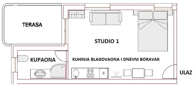 Studio je čisté a uklizené. Vše, co jsem v kuchyni potřeboval, bylo ve vybavení. Velmi milí hostitelé. Je blízko k moři a do centra Pagu, kam jít večer. Ateliér má být 2pokojový, ale pokud někdo jede s dítětem, dá se bez problémů zarezervovat také. vřele doporučuji.