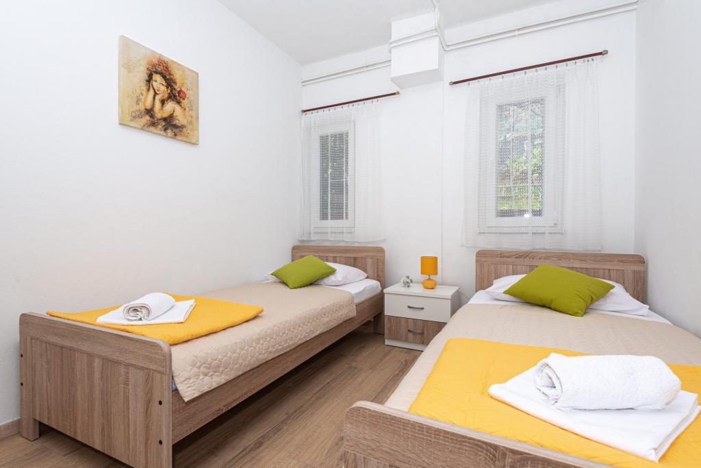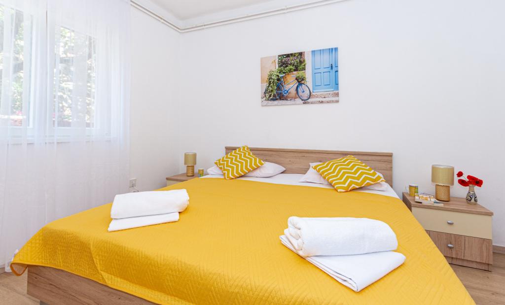 Apartmány se nacházejí ve městě Pag v oblasti Lokunja, pouhých 200 metrů od moře a 300 metrů od hlavní pláže. Do centra města, kde jsou obchody, pošta, kavárny a bary, to trvá méně než 10 minut snadné chůze. Pouze 25 km od Novalje-Zrć a 50 km od Zadaru. Tento dům má 4 ubytovací jednotky. Majitelé domu (Ivo a Jelica) bydlí v jednom z nich a jsou vám k dispozici. Jeden apartmán se nachází v prvním patře domu a má balkon s krásným výhledem na moře. V přízemí domu jsou další dva byty s terasami. K domu náleží velký dvůr, zahrada a hlídané parkovací místo a také možnost grilování. Vítejte.