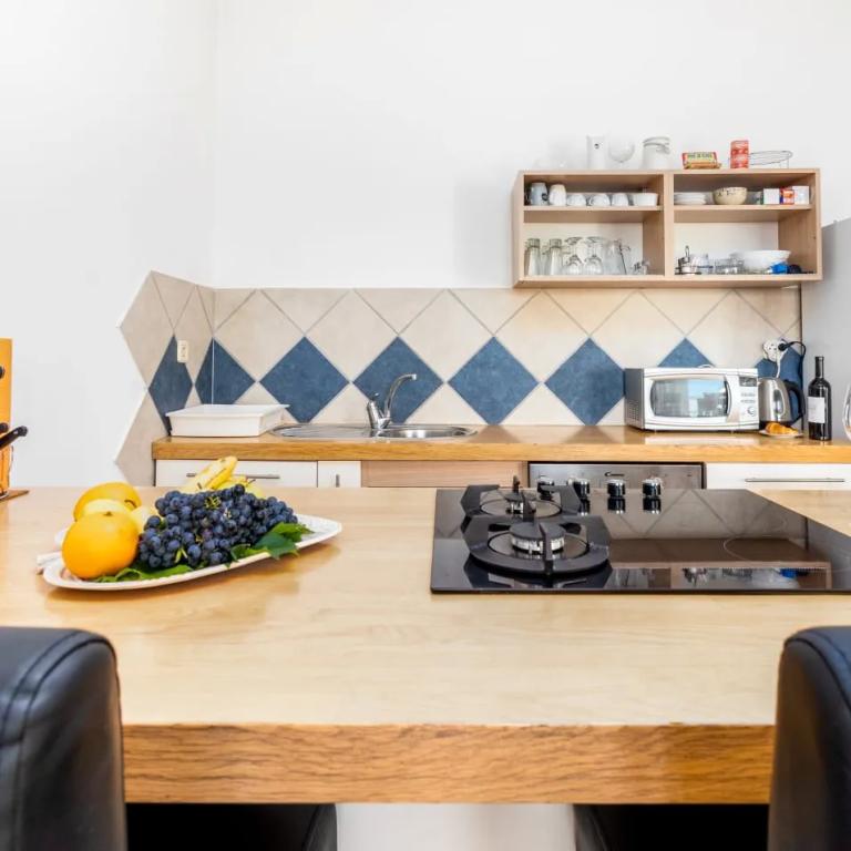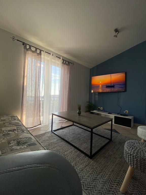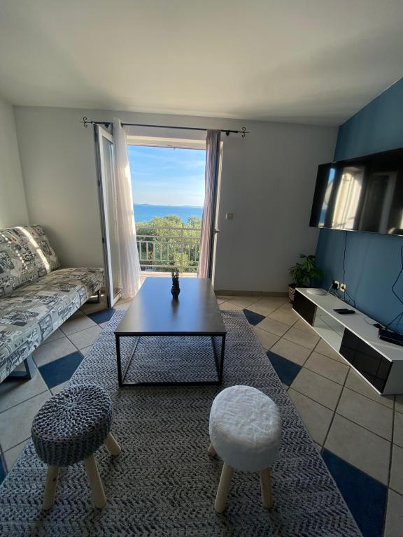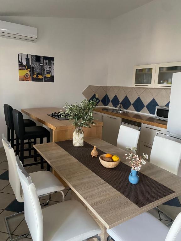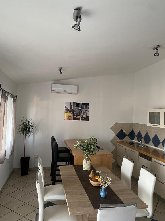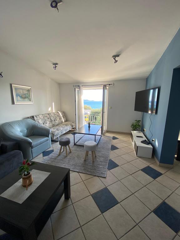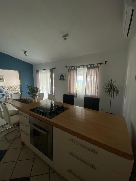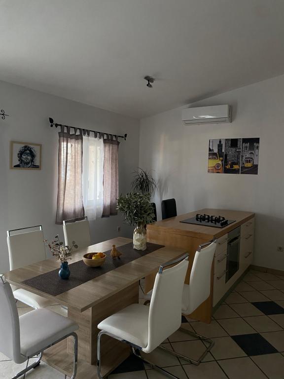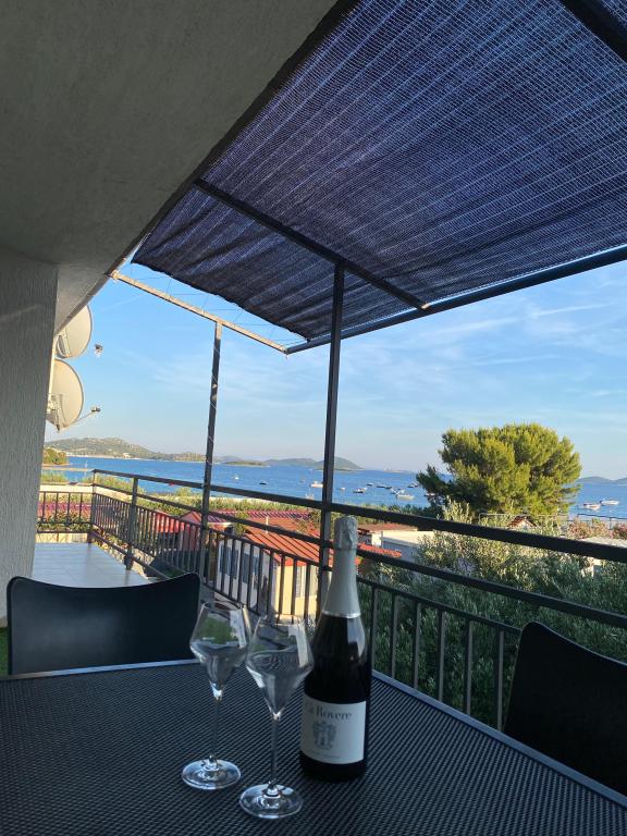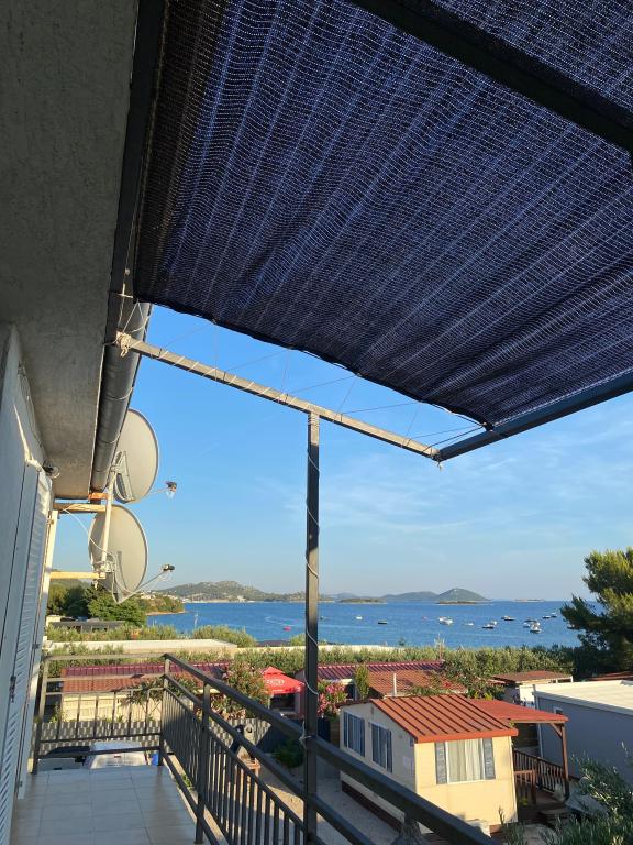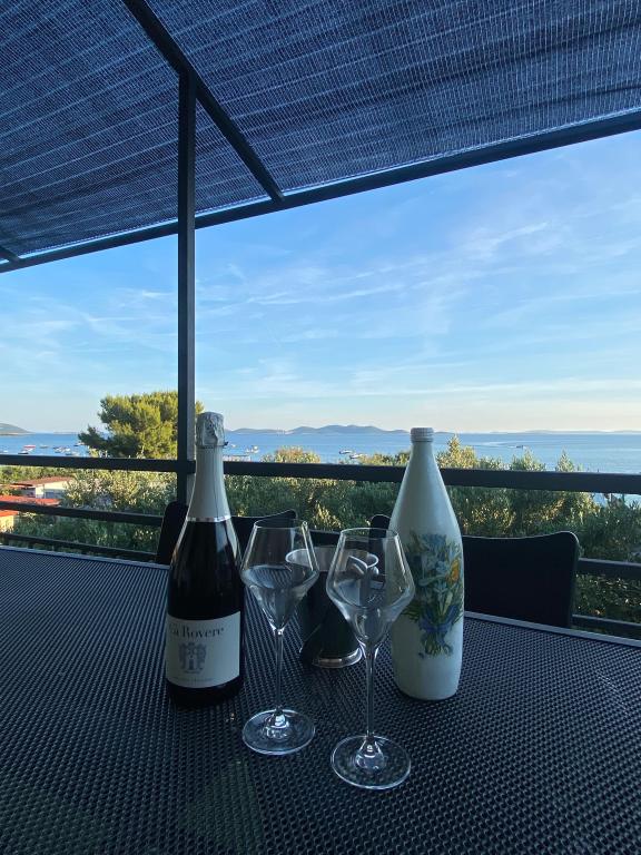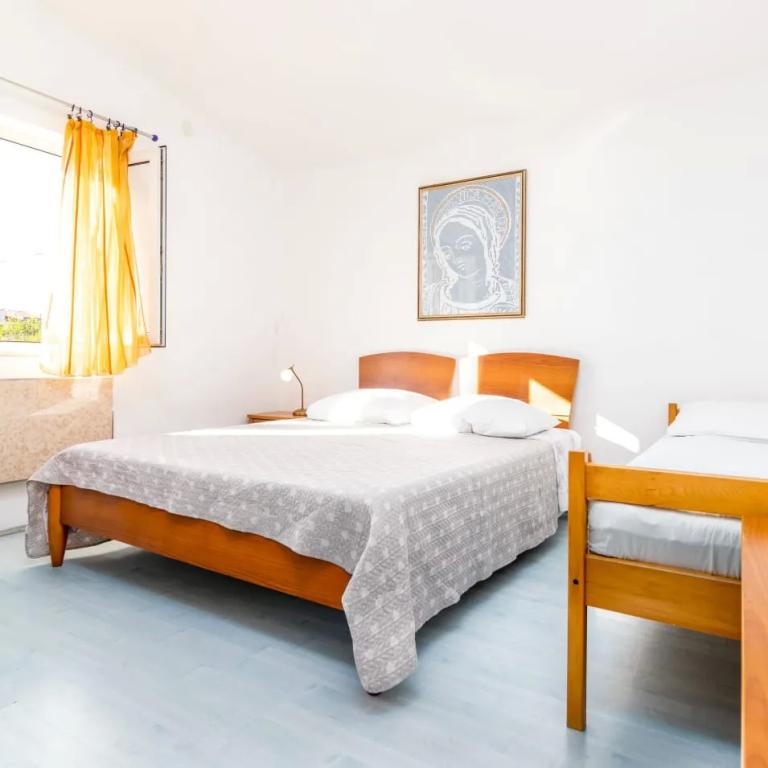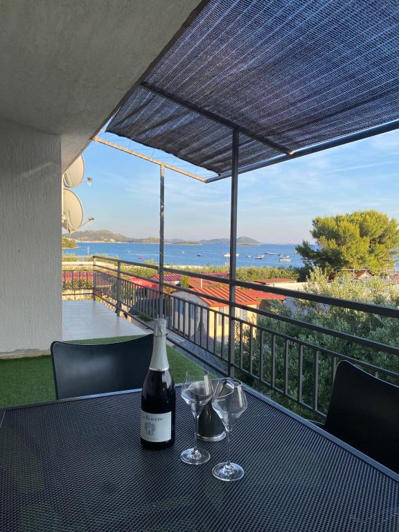 Nově zařízený apartmán na pláži, nedaleko od centra města, s krásnou terasou s výhledem na nedaleké ostrovy. V bezprostřední blízkosti plážový bar, pizzerie a rychlé občerstvení. Klimatizace, wi-fi, TV, myčka a pračka jsou jen některé z věcí, které apartmán nabízí. Dva pokoje s manželskou postelí, prostorný obývací pokoj a moderní kuchyně s ostrůvkem.