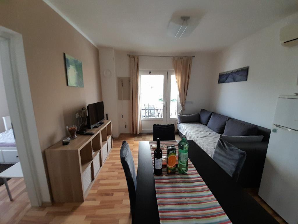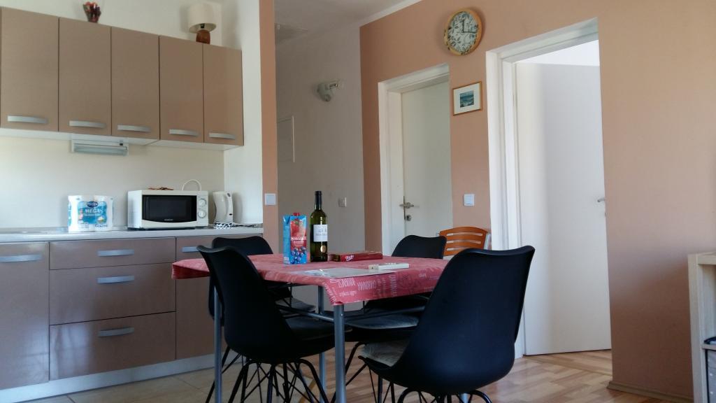 Plně vybavený 3pokojový byt v klidné lokalitě. Velká terasa a balkon s výhledem na moře. Možnost využití grilu na zahradě. Hlídané parkovací místo ve stínu.