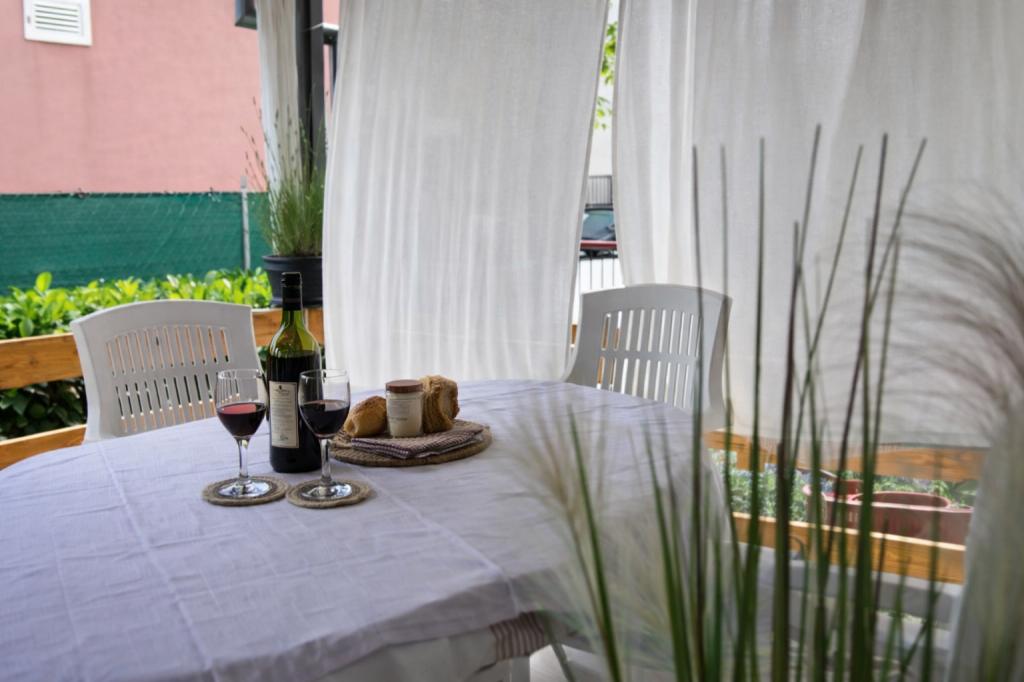 Krytá terasa nabízí dostatek prostoru pro rodinná setkání i každodenní relaxaci. K dispozici je soukromé parkovací místo ve dvoře domu, které je hostům k dispozici bez příplatku.