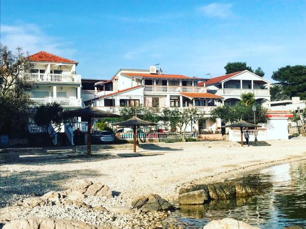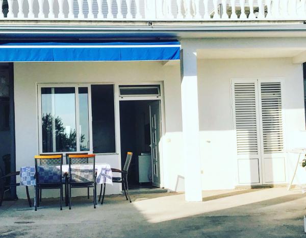 Super ubytování přímo u pláže. Moderní apartmán, 2xložnice, 2x koupelna. Z jedné z ložnic východ na terasu. Parkování u terasy. Po zatažení markýzy nebylo na terasu vidět z horních pater.Na přiložených fotkách je to dům úplně vlevo. Paní majitelka velmi přijemná dáma, rozumí česky takže se s ní dobře komunikuje po telefonu. Za mě 5 hvězdiček.