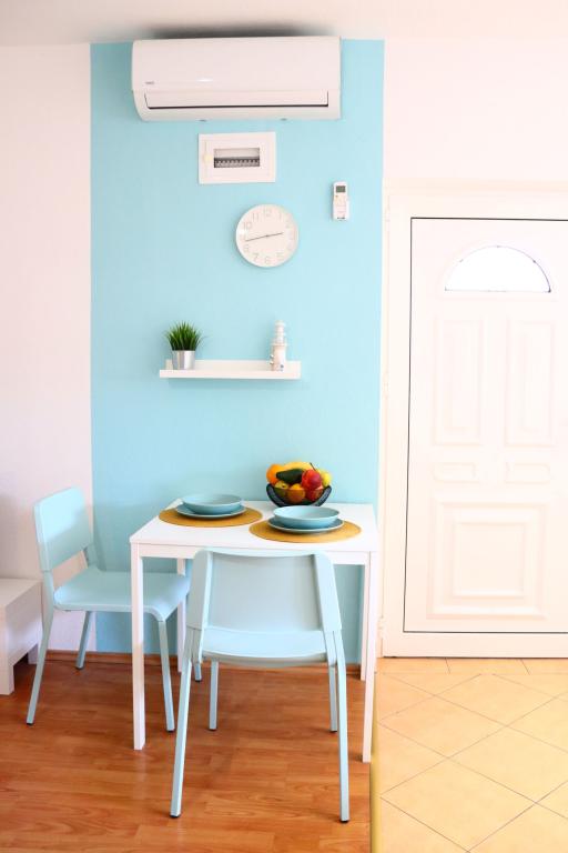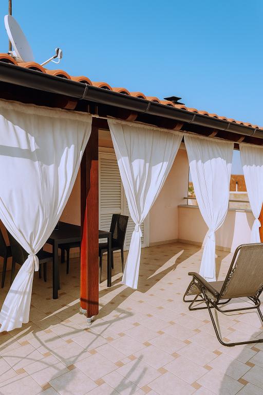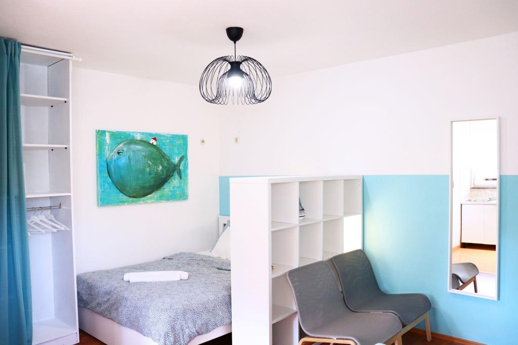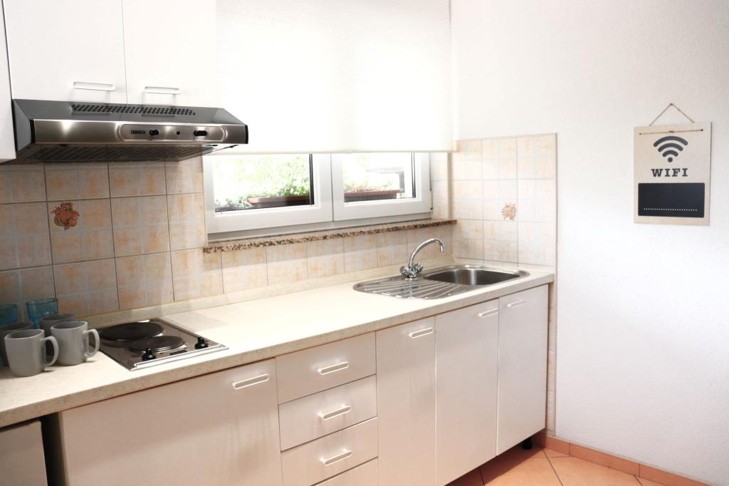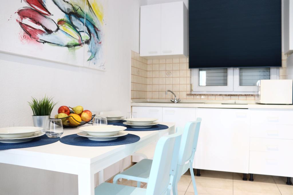 Apartmán A4 je velmi hezký, prostorný, čistý s velkou terasou s výhledem na moře a velmi dobře vybavenou kuchyní. Paní domácí milá a přátelská. Umístění apartmánu je v klidné lokalitě, ale zároveň pár kroků od moře, obchodů a restaurací. Pro rodiny s velmi malými dětmi apartmán úplně nejvhodnější není, přístup je po točitých schodech a ložnice s oddělenými postelemi je umístěna mimo apartmán se samostatným vstupem z terasy, museli jsme nakonec využít spaní na gauči, kterému jsme se výběrem apartmánu s více ložnicemi chtěli vyhnout. Pro ostatní ale bude apartmán dobrou volbou.