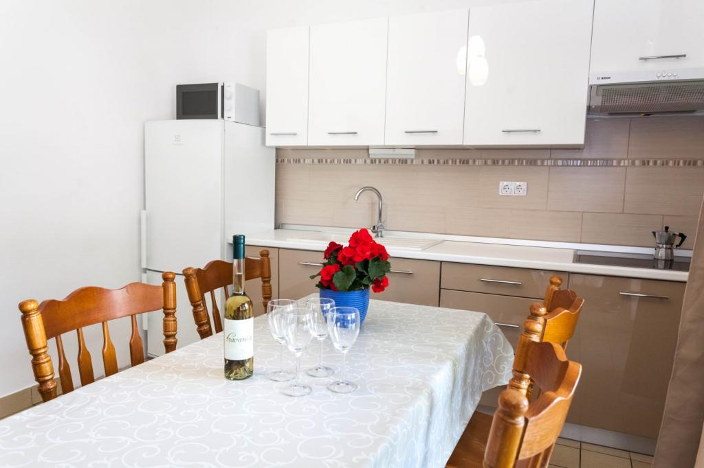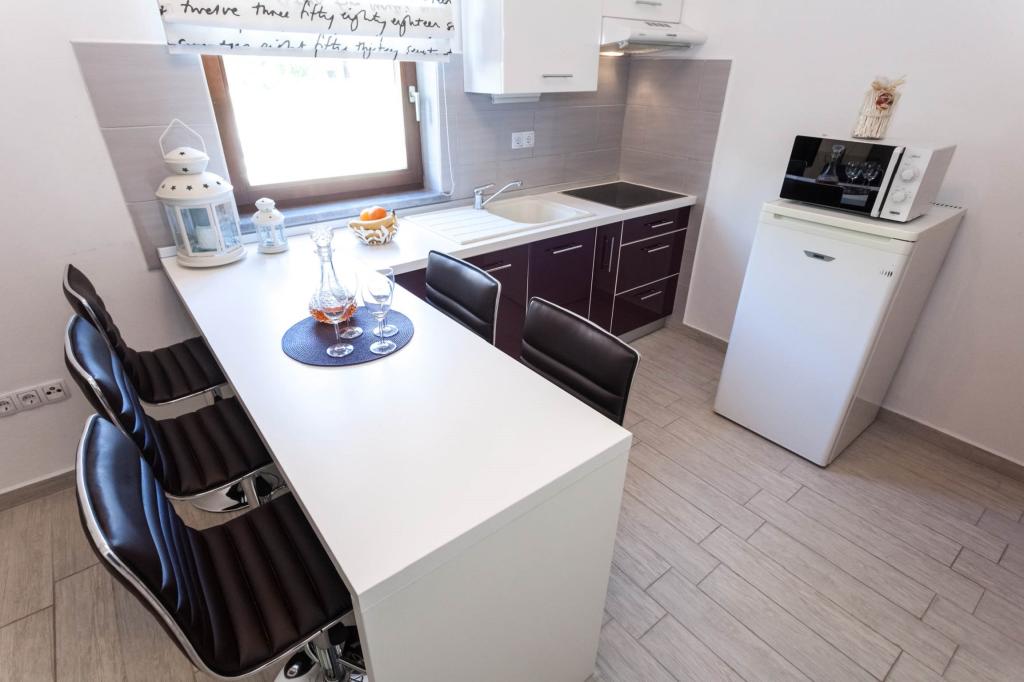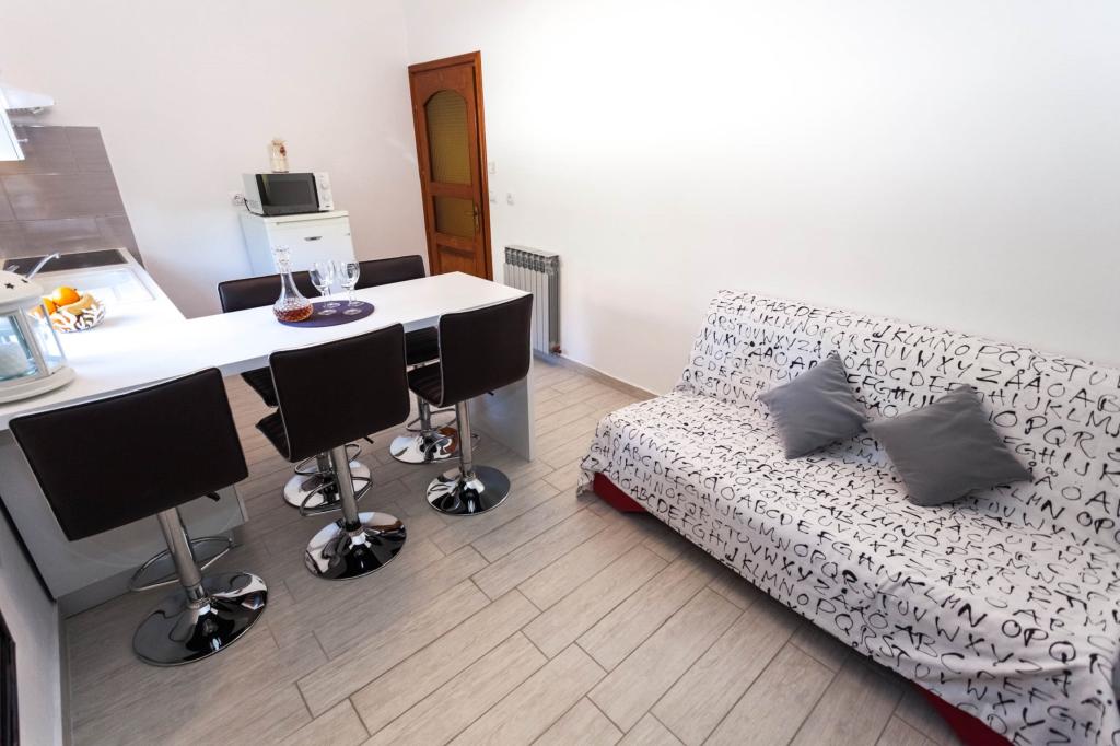 Vítejte v našich apartmánech s výhledem na moře! Náš apartmán, pokoj a studio se nacházejí ve druhém patře domu, pouhých 5 minut chůze od první pláže a centra města - ideální místo pro příjemnou a relaxační dovolenou. Všechny ubytovací jednotky mají krásný výhled na moře a jsou vybaveny satelitní TV a bezplatným internetem, takže můžete zůstat během své dovolené ve spojení. Bez ohledu na to, zda si vyberete apartmán, pokoj nebo studio, můžete očekávat pohodlí a vřelé přivítání. Příjezd je možný po 14:00 a odjezd do 10:00. Těšíme se na váš příjezd a přejeme vám nezapomenutelný pobyt!