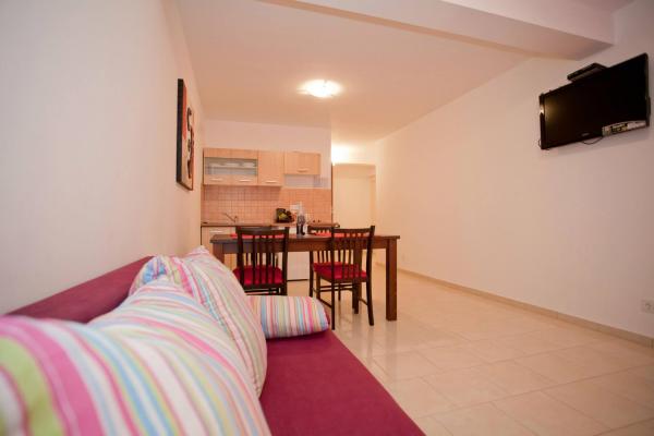 Super byt, velký vlastník, v blízkosti pláže (3-4 min chůze), v blízkosti středu, mír, klid, čistota .. velmi spokojeni, doporučujeme!