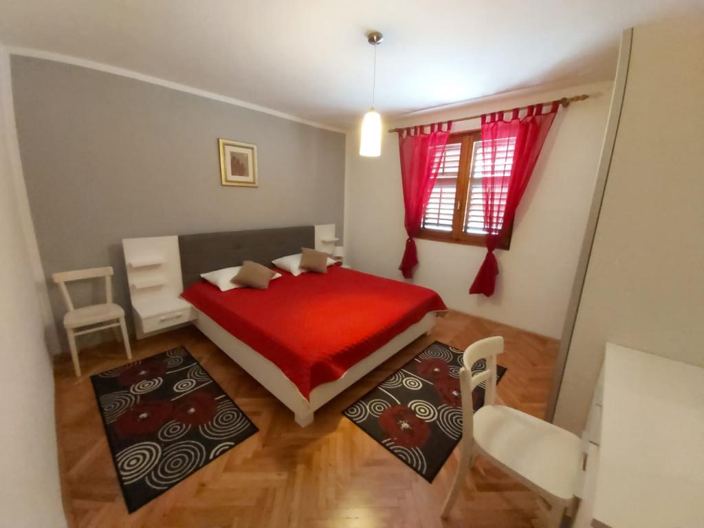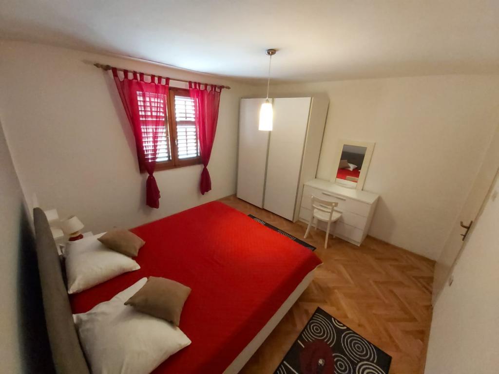 Užijte si dovolenou v srdci Dalmácie – Apartmány Ante v Pakoštane! Naše apartmány se nacházejí v 1. patře rodinného domu, pouhých 6-7 minut chůze od centra Pakoštane a krásné pláže. Jsou ideální pro klidnou a příjemnou dovolenou u moře. Apartmán Ante • Kapacita: 2+2 osoby • Skládá se z obývacího pokoje s kuchyní a jídelnou, ložnice, koupelny a kryté terasy • Klimatizovaný, s pohodlnou rozkládací pohovkou Pokoj Petra • Kapacita 2+1 • Manželská postel + jednolůžko • Chodba, koupelna a terasa • Klimatizovaný. Hosté pokoje mohou využívat letní kuchyň v přízemí.