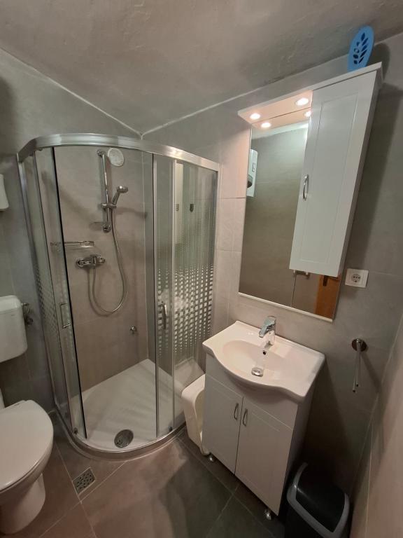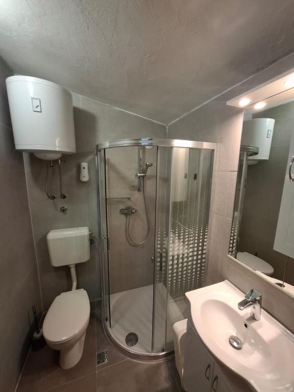 Čtyři APP (2 2) v klidné části Pakoštane. APP se skládá z ložnice, kde dvoulůžkové a třílůžkové komora. Obývací pokoj má postel (200x140), stůl se čtyřmi židlemi, a v jednom rohu kuchyně. Kuchyně se skládá z sudopra, pece kuhanhe s troubou a lednicí. Apartmán vlastní klimatizaci a TV. V přední části APP terasa se stolem a čtyřmi židlemi pro vaše aplikace. APP je v prvním patře soukromého domu. Dva apartmány se skládají ze dvou ložnic, kuchyně, jídelna a koupelna se sprchovým koutem. Apartmány mají velkou terasu s výhledem na moře, klimatizace. TV. Ve dvoře barbecue dětské houpačky a parkování v oploceném areálu.
