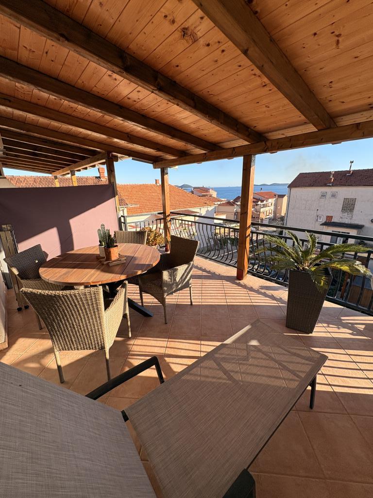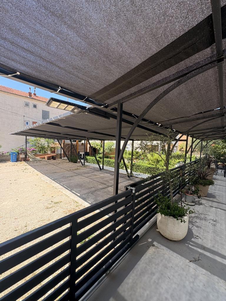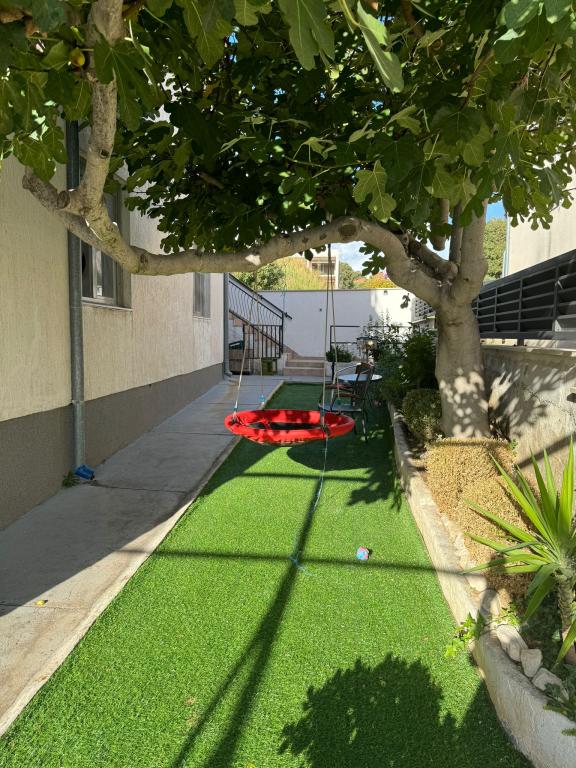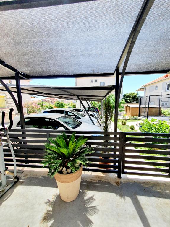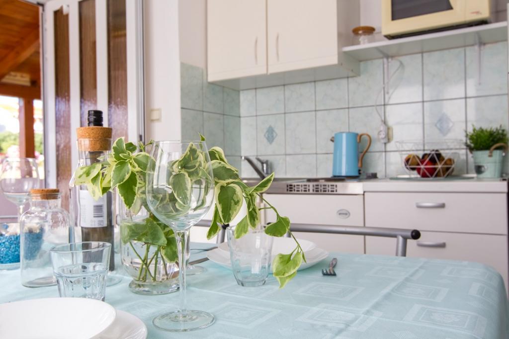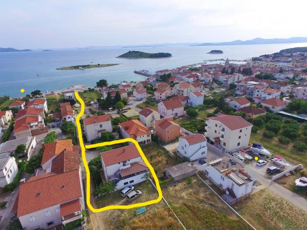 Dům s apartmány se nachází v blízkosti moře a na město. Jen pět minut chůze od pláže a nabízí klid a soukromí. V přední části domu je parkoviště pro každé vozidlo a jsou chráněny před sluncem. Na zahradě je gril, který lze vždy použít. Každý apartmán má svůj vlastní vchod. Velké balkony na jih s výhledem na moře.