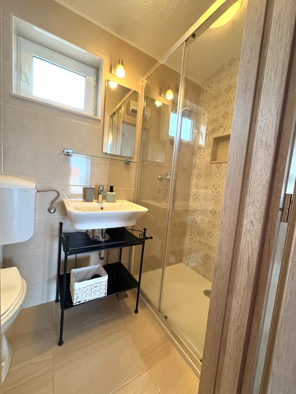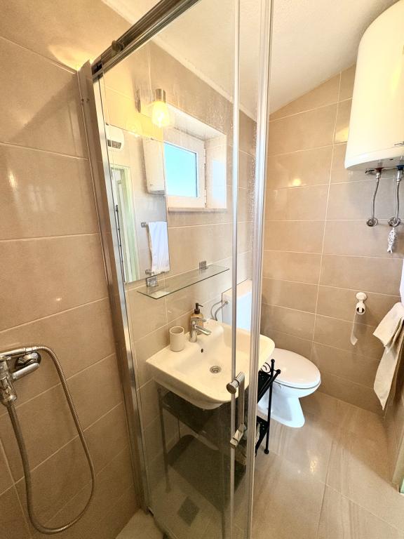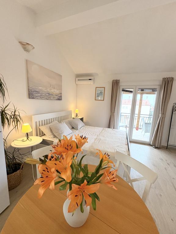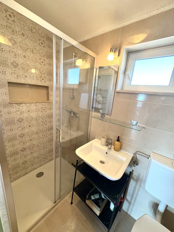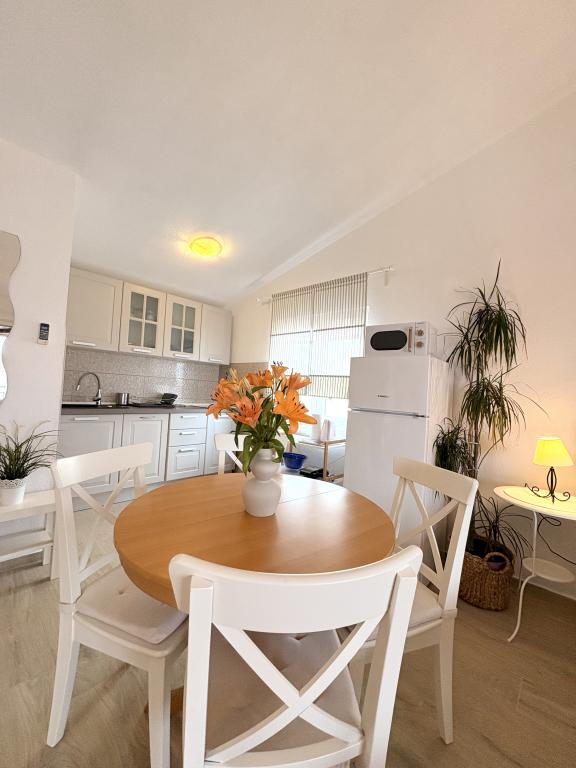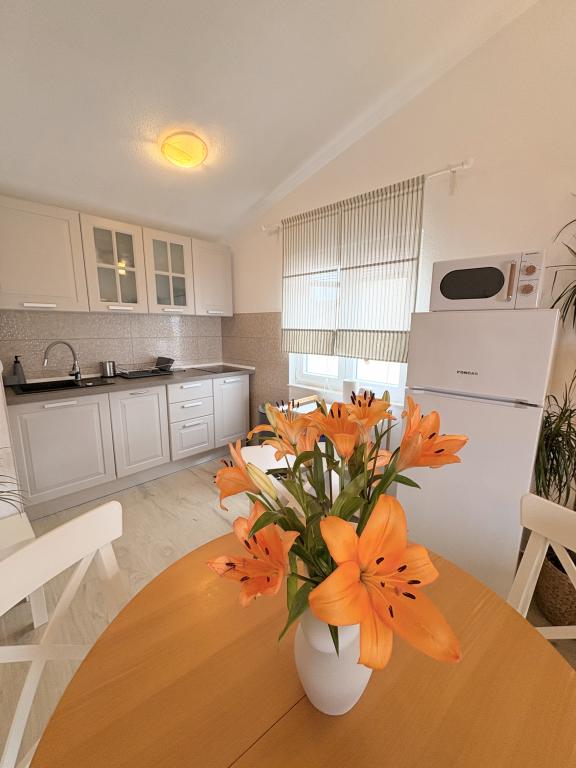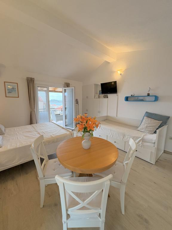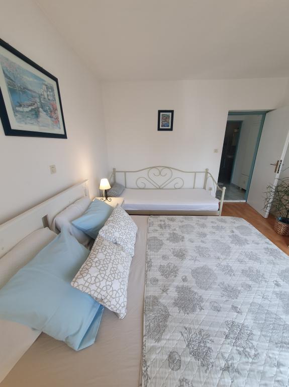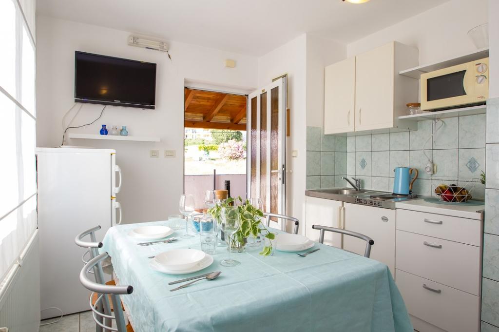 Skvělá dovolená Moc pěkné a dobré ubytování, velká terasa se stolem a židlemi a lehátkem, kde byla možnost použít roletu proti slunci , pokoje vybavené klimatizací. Místo ubytování bylo dobře označeno, u domu se nachází velké parkovací místo pro 4 auta. Vybavení pokoje bylo dle fotek na internetu, bylo nám též zasláno několik nových fotografií od majitelky s novým vybavením pokojů (studií). Studio je ideální pro rodinu s 2 dětmi,je tam rozkládací plnohodnotná postel pro 2 osoby. Vybavení ostatním nábytkem je dobré,vybavení kuchyňského koutu spotřebiči a nábytkem je přesně dle fotografií,nádobí postačuje 4-členné rodině,je tam vše, co potřebujete. Kousek od domu je obchod s pečivem a různý prodej ovoce a zeleniny. Moc milý majitelé,přátelští a ochotní,velmi skvělá domluva. Kousek na pláž. Večer a v noci klid. Dovolená se nám tu moc líbila,doporučujeme. Měli jsme pronajatá i další studia - 2+2 a 3+1,i tyto byly v pořádku,u studia 3+1 je skvěle zastřešené posezení (pergola) pro bez problémové posezení cca10 lidí. Kousek od domu (cca 200 m) začíná centrum města s dobrými restauracemi a obchody. Pláže jsou kamenité - drobný štěrk a betonové.