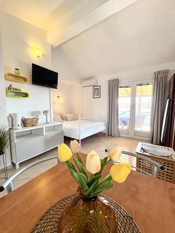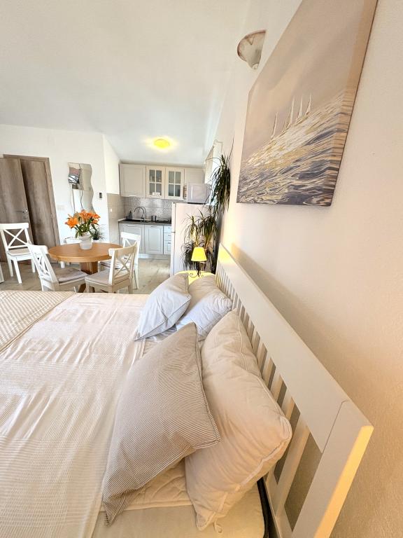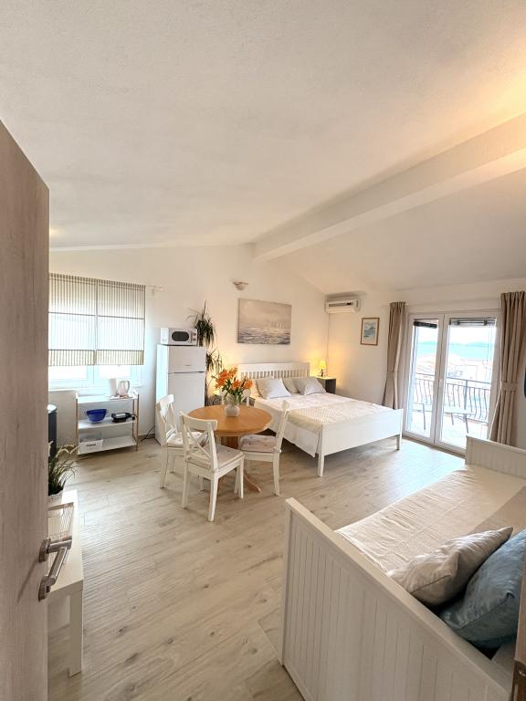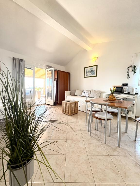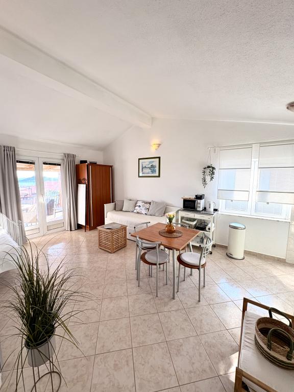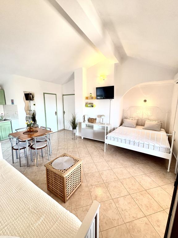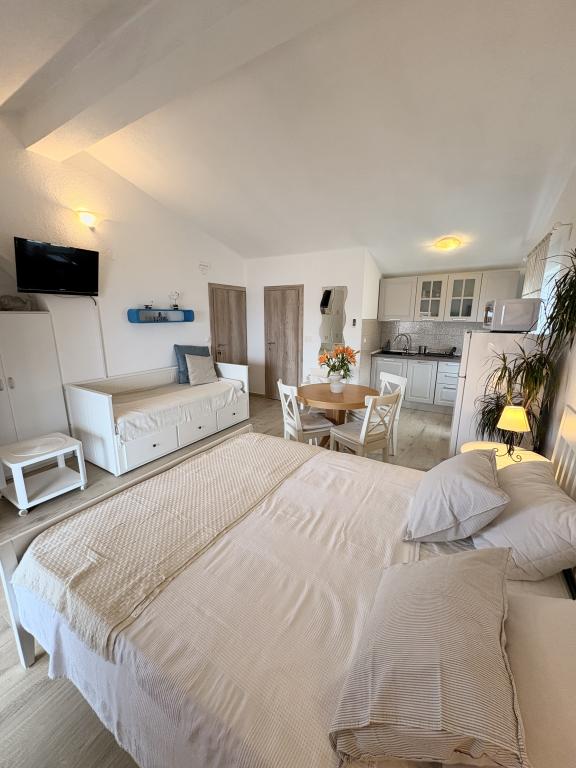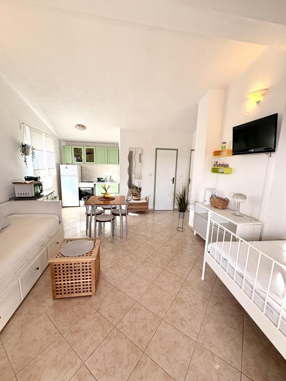 Moc pěkné ubytování, krásná velká terasa. Studio stačí pro rodinu s malými dětmi. Vybavení je super, vše co potřebujete. Moc milý majitelé, velice přátelští a ochotní. Kousek na pláž. Večer a v noci klid. Doporučujeme, moc se nám dovolená líbila.