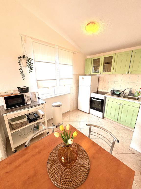 Velmi doporučuji byt v IVANA! Čistý, dobře vybavený, nádherný výhled na moře. Pláž je 200 metrů od pláže. Vše vypadá přesně tak, jak je to uvedeno na obrázcích. Obrovská terasa se stolem pro 4 osoby, denní postel, sušička prádla. Kuchyně je vybavena veškerým potřebným příslušenstvím. Pěkný majitel vždy pozdraví hosty s velkými fíky nebo melounem. Navštívili jsme ji podruhé a rozhodně se k ní vrátí. IVANA! Zdravím a děkuji.