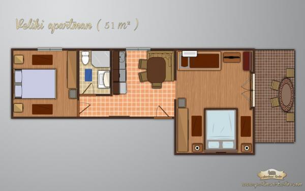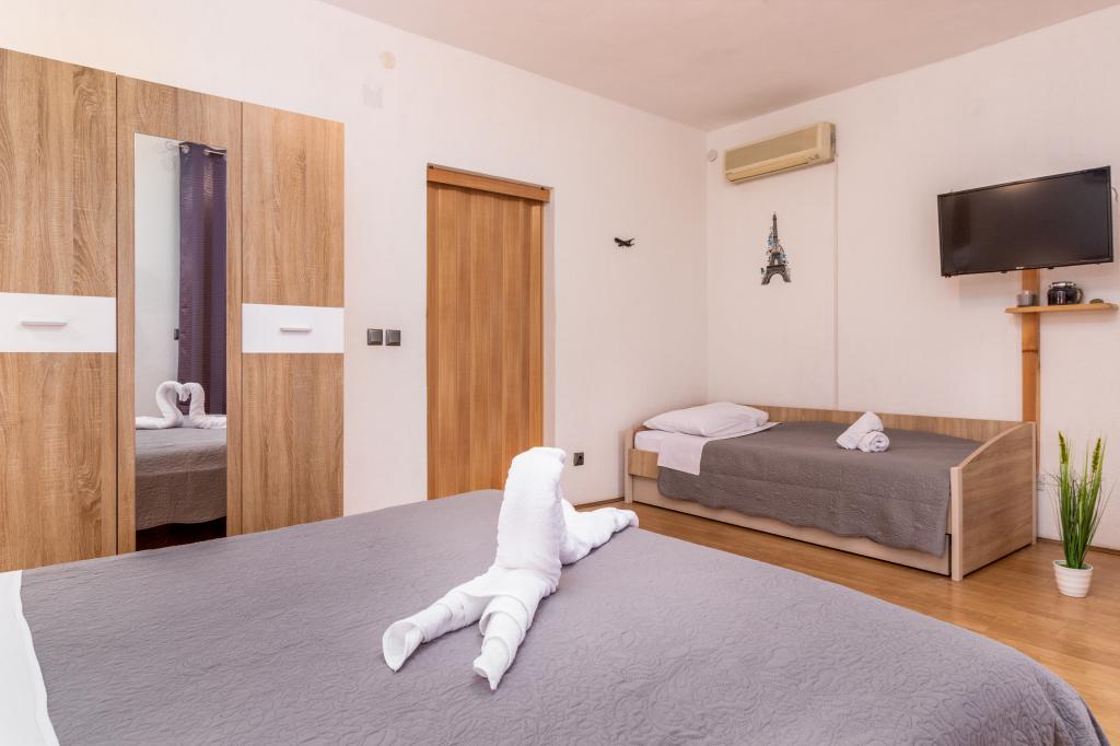 Přečtěte si více Ubytovací jednotkyVytvoření rezervace ubytování je 100 € a apartmány jsou vypláceny v den Dol (v eurech nebo Kuna).