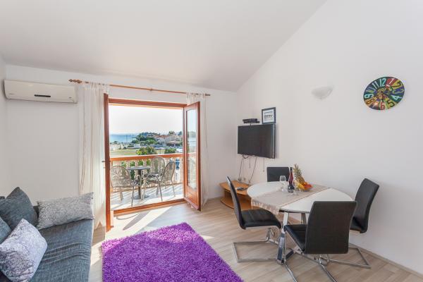 Velký, čistý a dobře zařízený byt na výjimečném místě. V blízkosti - není třeba používat auto, několik krásných pláží, obchody 5 m daleko, kavárny, restaurace a vlastní parkoviště přímo před apartmánem. Špičkové vybavení apartmánu - vše na vaření, velká TV s dostatkem obsahu, WiFi, klimatizace, velký balkon s markýzou a krásný výhled na moře, které díky své poloze není horké a lze užívat po celý den. K tomu všemu je přivítání, vřelost a dostupnost majitele apartmánu zárukou ideální dovolené. Všechno nejlepší a určitě se vrátíme každý rok.