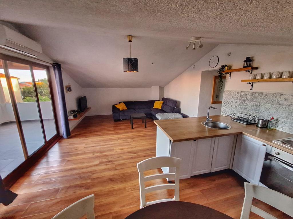 Dům se nachází v centru Pakoštanu. Je to pár minut chůze do centra města a na pláž. V domě jsou dva byty o velikosti 50 m2 a nacházejí se v prvním patře domu. Byt se skládá z kuchyně s jídelnou, ložnice a koupelny. V ložnici je manželská postel a jedna přistýlka, také další přistýlka v kuchyni/obýváku. Kuchyň je vybavena základními kuchyňskými spotřebiči a základním kuchyňským nádobím. K dispozici je parkovací místo ve dvoře domu (chráněno před sluncem). Wi-Fi je v ceně ubytování!