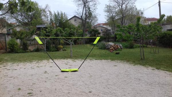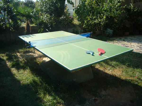 Máme garáž na kola, vybavení pro dětské hry jako stolní tenis, badminton, šipky, odrážedla, romobily, kola... Venkovní gril a sedací nábytek ve stínu vedle grilu i na trávníku. Nabízíme domácí olivový olej a brandy.