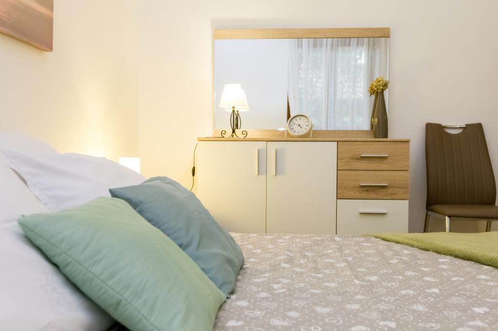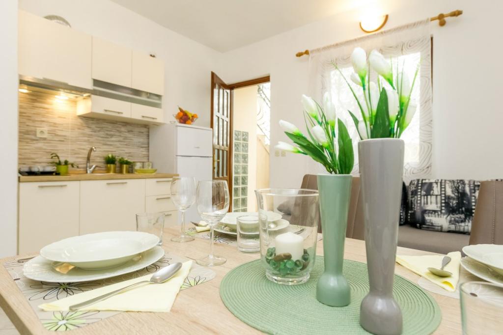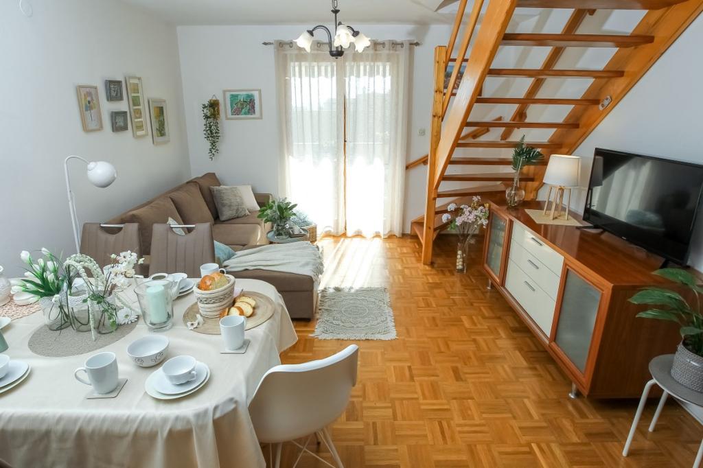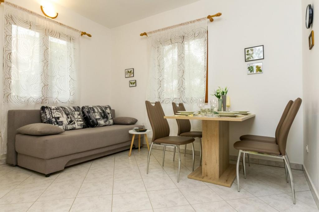 Naše zařízení vyzařuje příjemnou, domáckou atmosféru, kde se hosté mohou cítit uvolněně a skutečně vítáni. Nachází se na výborném místě, pouhých 400 metrů od centra města, přičemž veškerá potřebná občanská vybavenost je v dosahu – nejbližší obchod je vzdálený pouhých 30 metrů. Dům se skládá ze tří ubytovacích jednotek, každá s vlastním balkonem, kde si můžete vychutnat ranní kávu nebo pohodové večery. Největší apartmán má navíc tři prostorné terasy, které poskytují ještě více prostoru pro venkovní pobyt a společné chvíle. Hosté mají také přístup do společného venkovního prostoru, který zahrnuje prosklený altán s kuchyní, vnitřním krbem a velkým stolem, ideálním pro společenské setkání a venkovní stolování. Tento teplý a útulný prostor se nachází uprostřed zeleně a poskytuje klidné prostředí pro relaxaci, konverzaci a vytváření krásných vzpomínek. Ubytování je vhodné pro různé typy hostů, a je obzvláště příjemné pro rodiny s dětmi, které si mohou bezstarostně hrát v bezpečném a prostorném prostředí. Každý apartmán má také vlastní venkovní parkovací místo, aby byl váš pobyt co nejjednodušší a bezstarostnější. Jako hostitelé jsme vždy k dispozici, abychom vám poskytli rady, doporučení nebo pomohli s organizací vašeho pobytu - chceme, abyste se cítili jako doma a z Pakoštane si odvezli jen krásné vzpomínky.