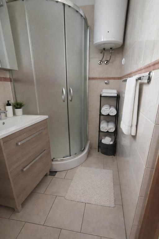 Apartmány A4 1 se nacházejí v přízemí rodinného domu a apartmán A2 2 ve stáji. Mobilní dům se nachází na stejné adrese jako apartmány a má velkou terasu a hřiště v přední části. Apartmány se nacházejí v klidné ulici, 3-4 minuty chůze od pláže a centra.