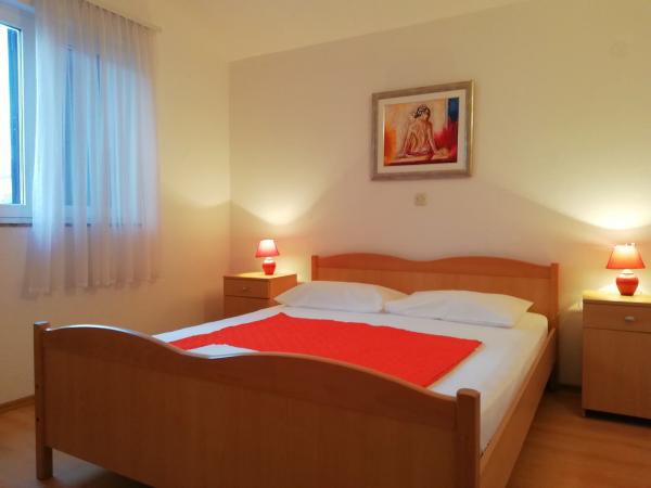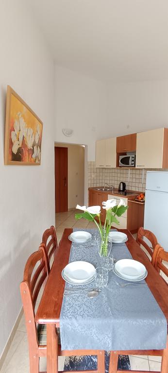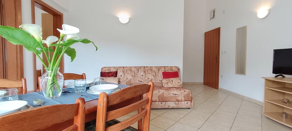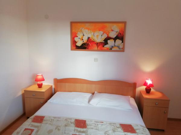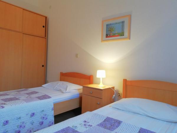 Moderně vybavené apartmány v turistické oblasti Pakoštan. Apartmány se nacházejí 5-10 minut chůze od pláží a centra města. V blízkosti bytu je supermarket a sportovní hřiště.Nemovitost se nachází na ploše 1600 m2 s upraveným dvorem a parkovacími místy a grilem pro hosty. Všechny apartmány mají ložní prádlo a ručníky pro hosty. Kuchyň je vybavena veškerým potřebným kuchyňským vybavením. V hlavní hale je žehlicí prkno. Pobytová taxa, klimatizace a WiFi jsou zahrnuty v ceně. Domácí mazlíčci jsou vítáni. Cena za domácí mazlíčky je 5 Eur/den. Check in od 14 hodin. Odhlášení do 10:00.