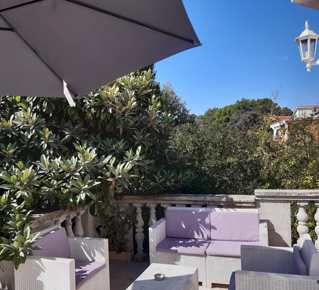 Apartmány se nacházejí ve slepé uličce, bez hluku a dopravy, takže si můžete v klidu dopřát relaxační atmosféru. Každý apartmán má samostatný vchod a vlastní terasu, kde je možné kouřit. Apartmány jsou vybaveny vším, co potřebujete (ložní prádlo, ručníky, nádobí...). Je to 5-6 minut chůze na pláž i do centra. V blízkosti bytu je restaurace a pekárna. Apartmán 1 se nachází v prvním patře se dvěma ložnicemi, koupelnou, vstupní halou, kuchyní s obývacím pokojem a terasou. Apartmán 2 se nachází v přízemí a má vlastní zahradu. Skládá se z ložnice, obývacího pokoje s kuchyní, koupelny a terasy. Studio se nachází v prvním patře s terasou - ložnice, koupelna a kuchyně.