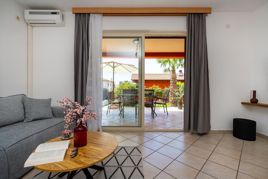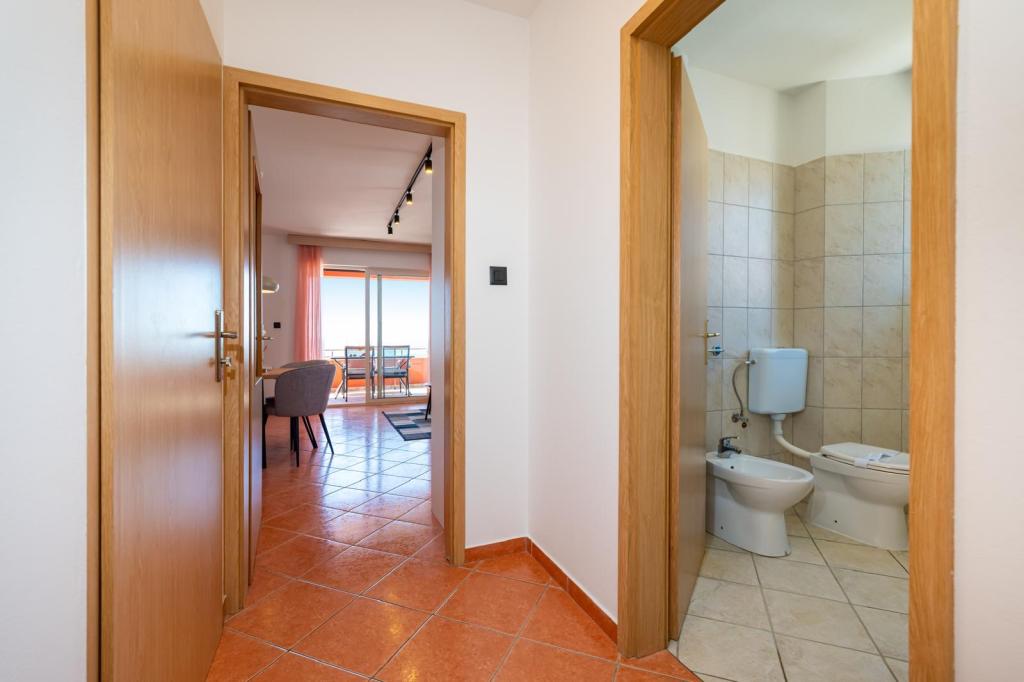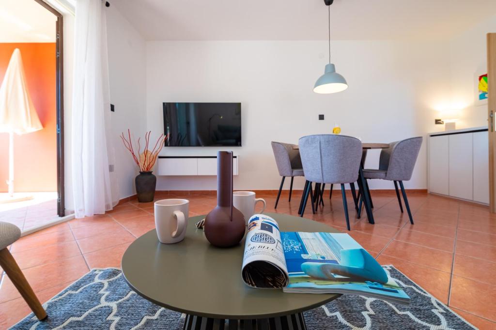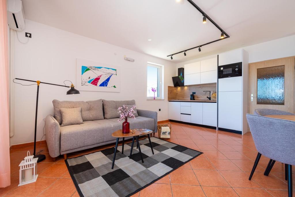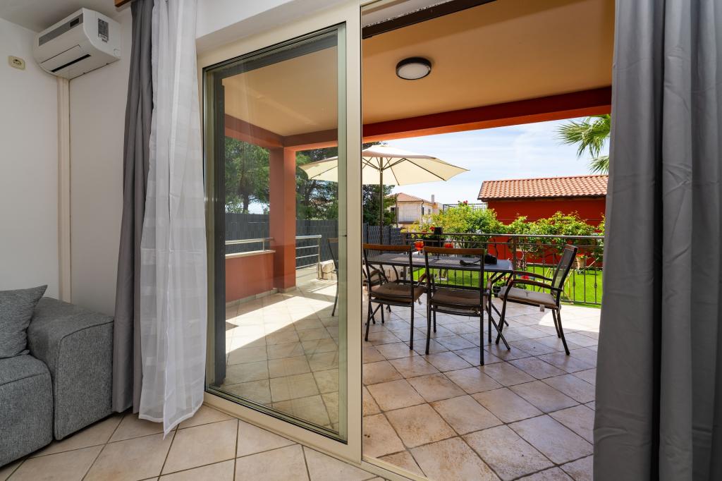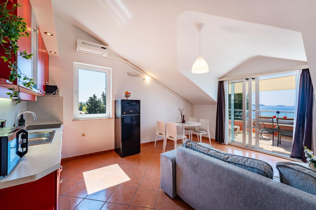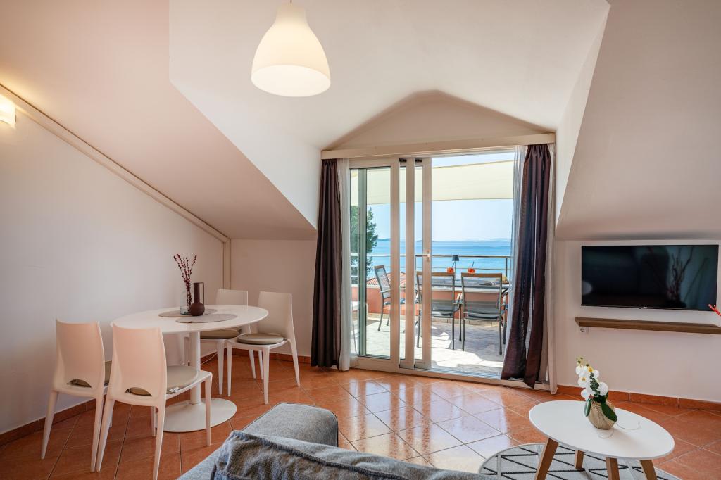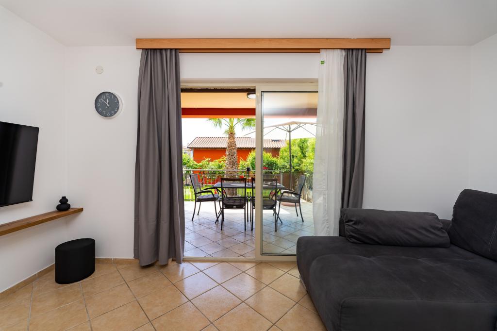Vila San Marino má osm identických apartmánů rozmístěných na třech podlažích. Na každém patře jsou dva apartmány. Apartmány mají celkovou rozlohu 55 m2 a obsahují dvoulůžkovou ložnici, obývací pokoj s rozkládací postelí, kuchyň, jídelnu a velkou terasu. Všechny apartmány se nacházejí v první řadě u moře a jsou orientované směrem k moři. Jsou vybaveny klimatizací pro chlazení a vytápění. Kuchyně jsou vybaveny nádobím pro přípravu a servírování jídla a nápojů v odpovídajícím množství, lednicí, mrazákem, elektrickou varnou deskou, plynovým sporákem a digestoří a koupelny mají sprchy. Každý apartmán má plochou televizi se satelitním příjmem a anténou a přístup k internetu. Terasy mají posezení.