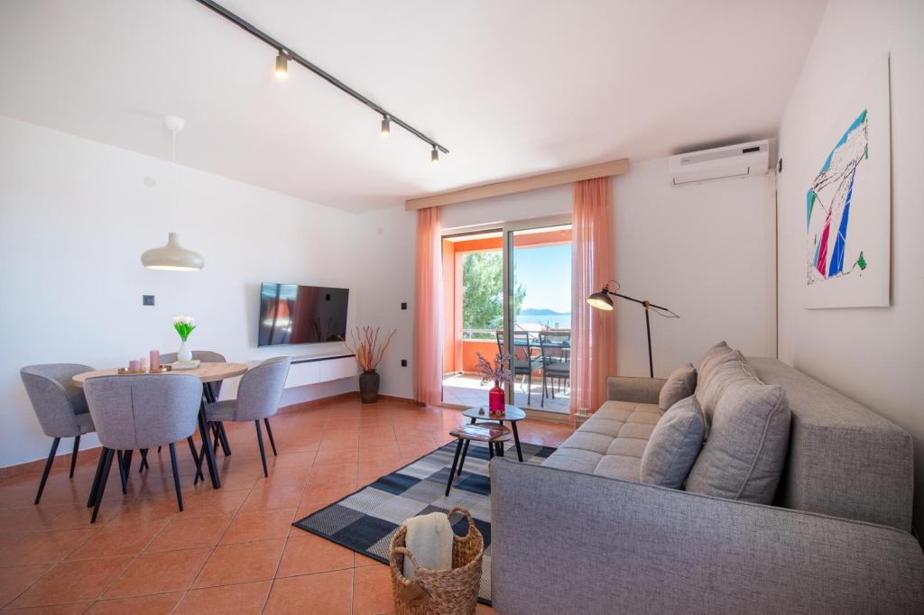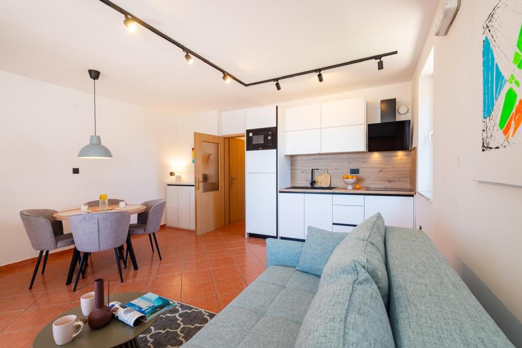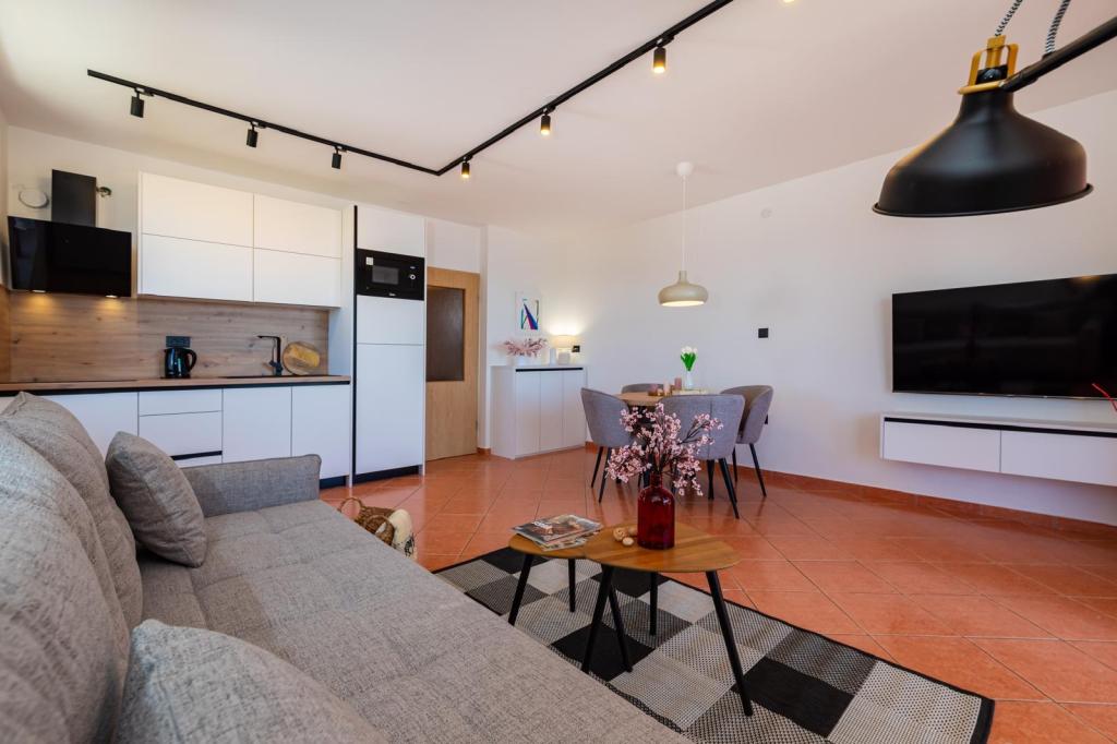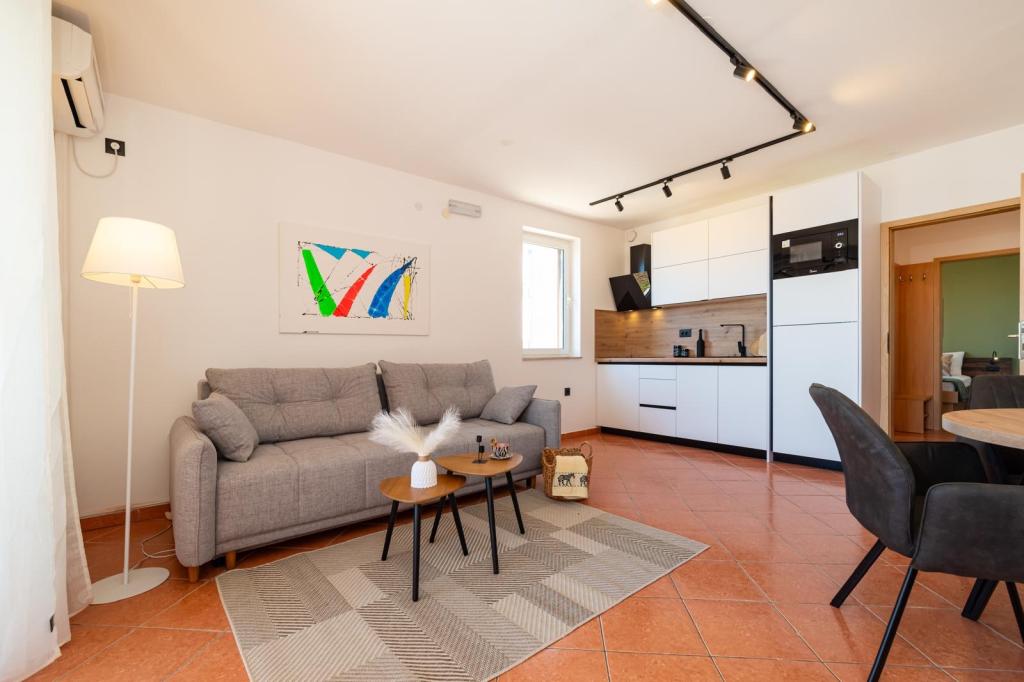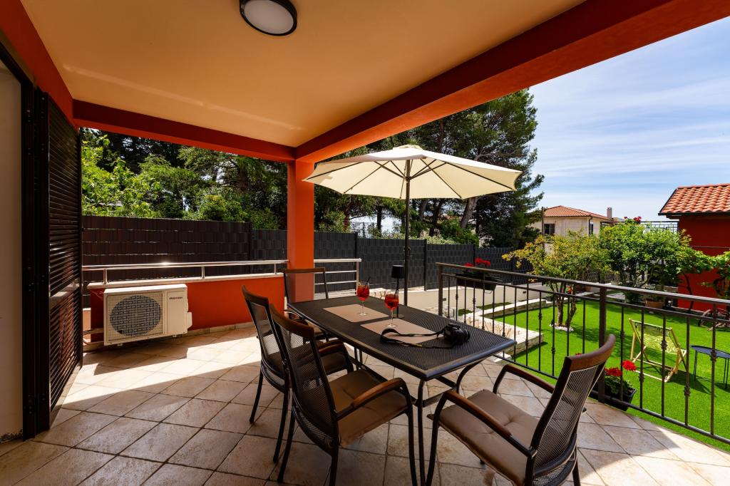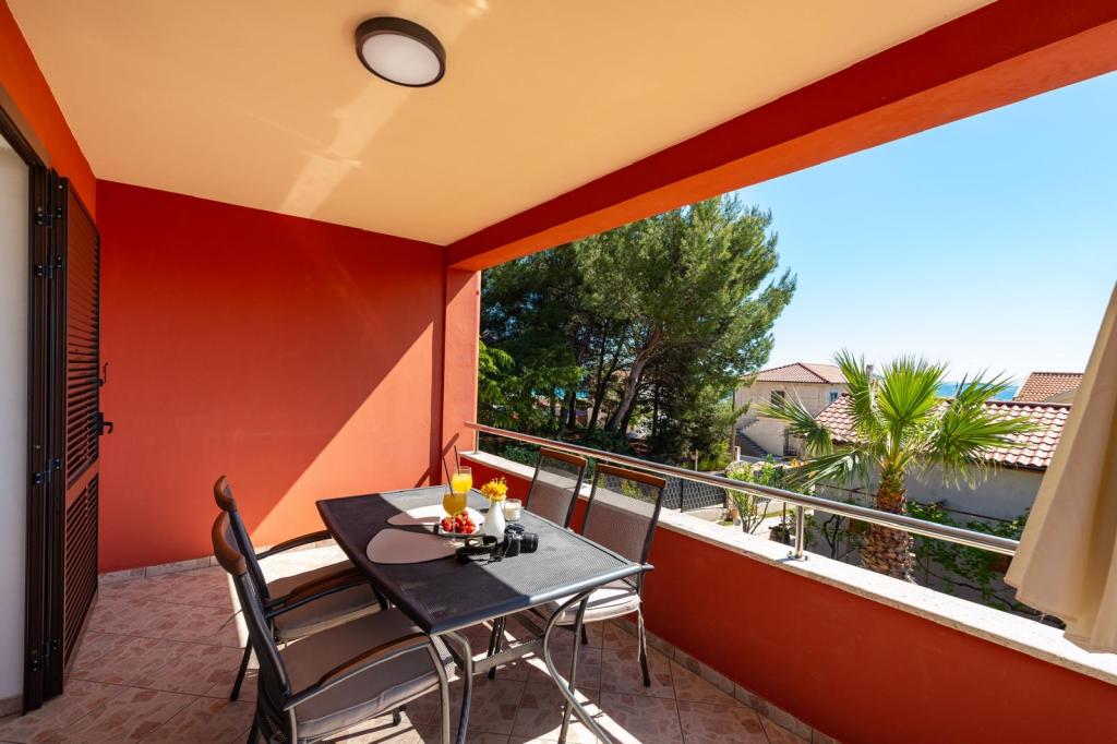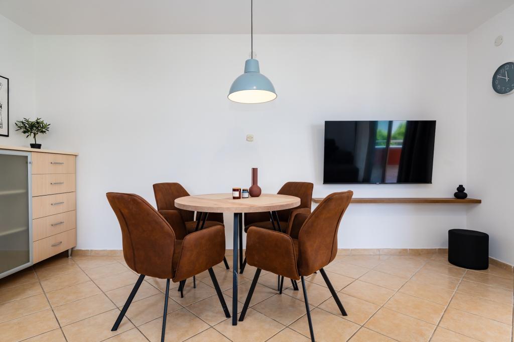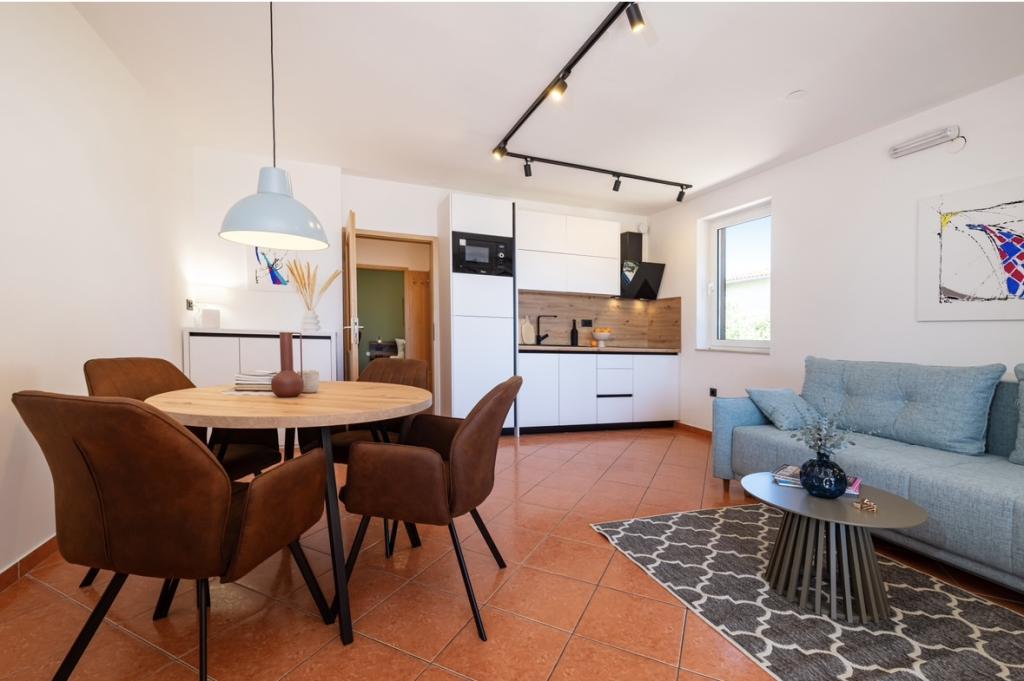 Vila San Marino má osm identických apartmánů rozmístěných na třech podlažích. Na každém patře jsou dva apartmány. Apartmány mají celkovou rozlohu 55 m2 a obsahují dvoulůžkovou ložnici, obývací pokoj s rozkládací postelí, kuchyň, jídelnu a velkou terasu. Všechny apartmány se nacházejí v první řadě u moře a jsou orientované směrem k moři. Jsou vybaveny klimatizací pro chlazení a vytápění. Kuchyně jsou vybaveny nádobím pro přípravu a servírování jídla a nápojů v odpovídajícím množství, lednicí, mrazákem, elektrickou varnou deskou, plynovým sporákem a digestoří a koupelny mají sprchy. Každý apartmán má plochou televizi se satelitním příjmem a anténou a přístup k internetu. Terasy mají posezení.
