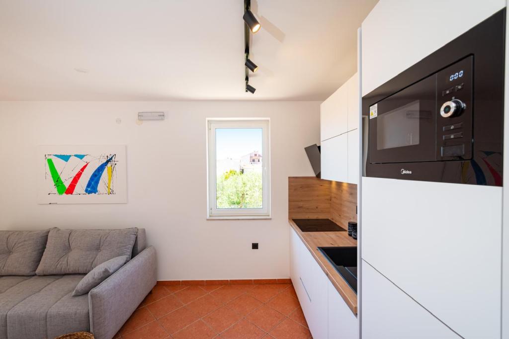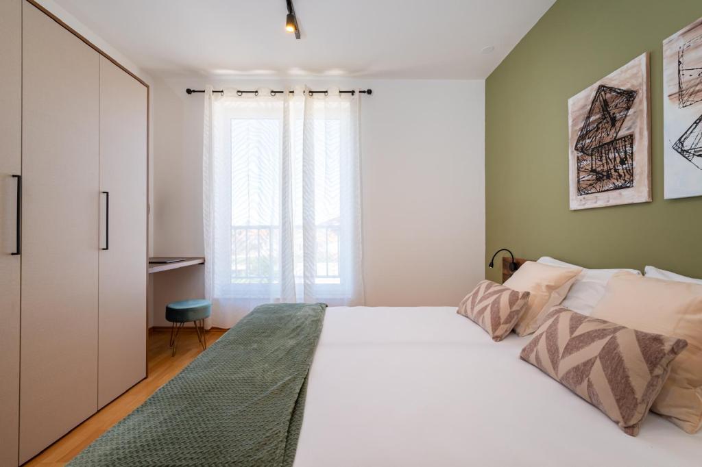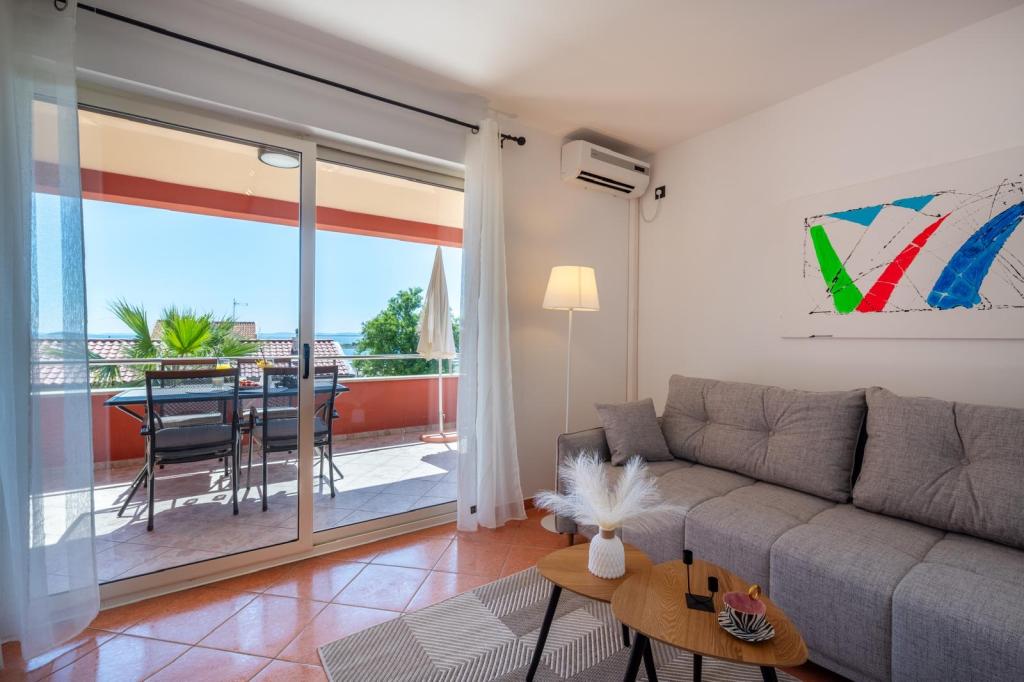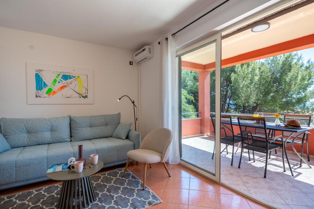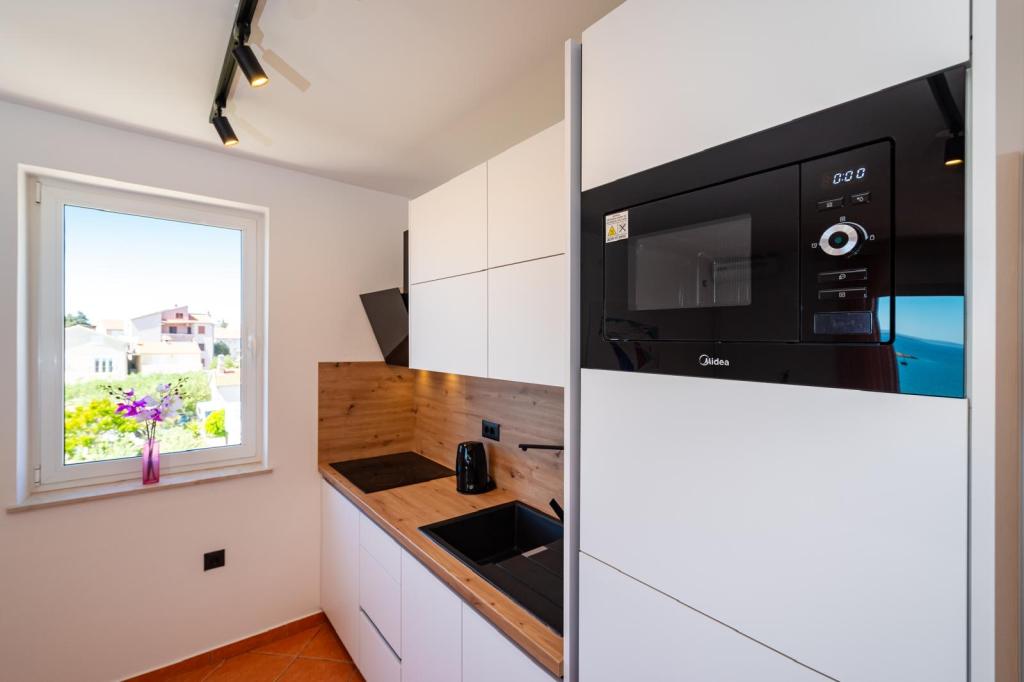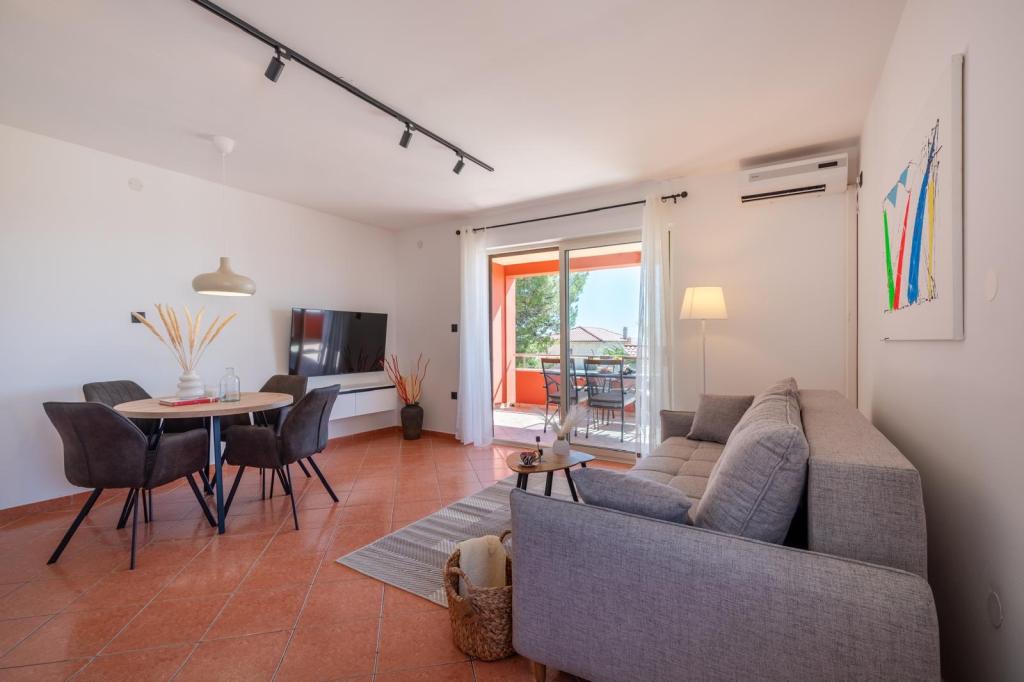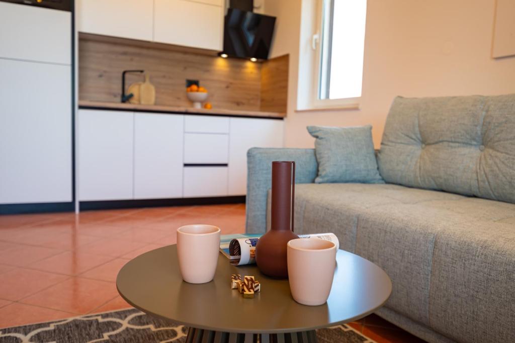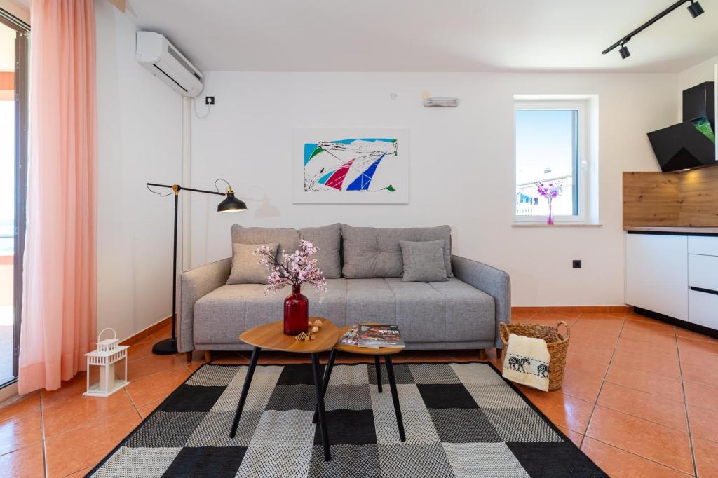 Vila San Marino má osm identických apartmánů rozmístěných na třech podlažích. Na každém patře jsou dva apartmány. Apartmány mají celkovou rozlohu 55 m2 a obsahují dvoulůžkovou ložnici, obývací pokoj s rozkládací postelí, kuchyň, jídelnu a velkou terasu. Všechny apartmány se nacházejí v první řadě u moře a jsou orientované směrem k moři. Jsou vybaveny klimatizací pro chlazení a vytápění. Kuchyně jsou vybaveny nádobím pro přípravu a servírování jídla a nápojů v odpovídajícím množství, lednicí, mrazákem, elektrickou varnou deskou, plynovým sporákem a digestoří a koupelny mají sprchy. Každý apartmán má plochou televizi se satelitním příjmem a anténou a přístup k internetu. Terasy mají posezení.