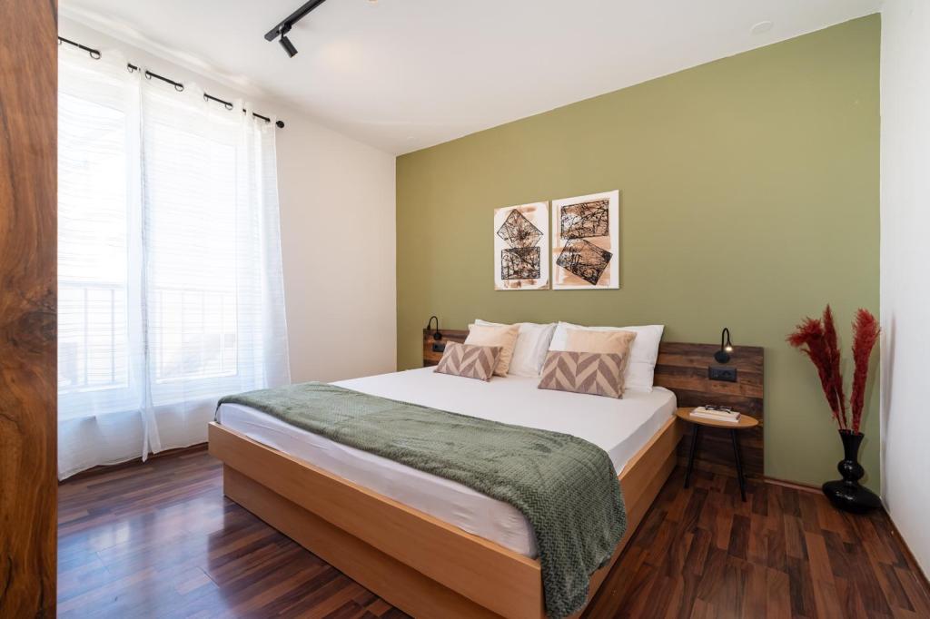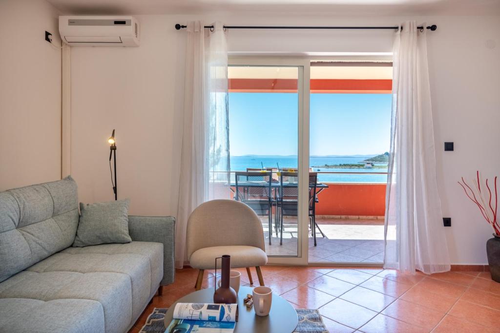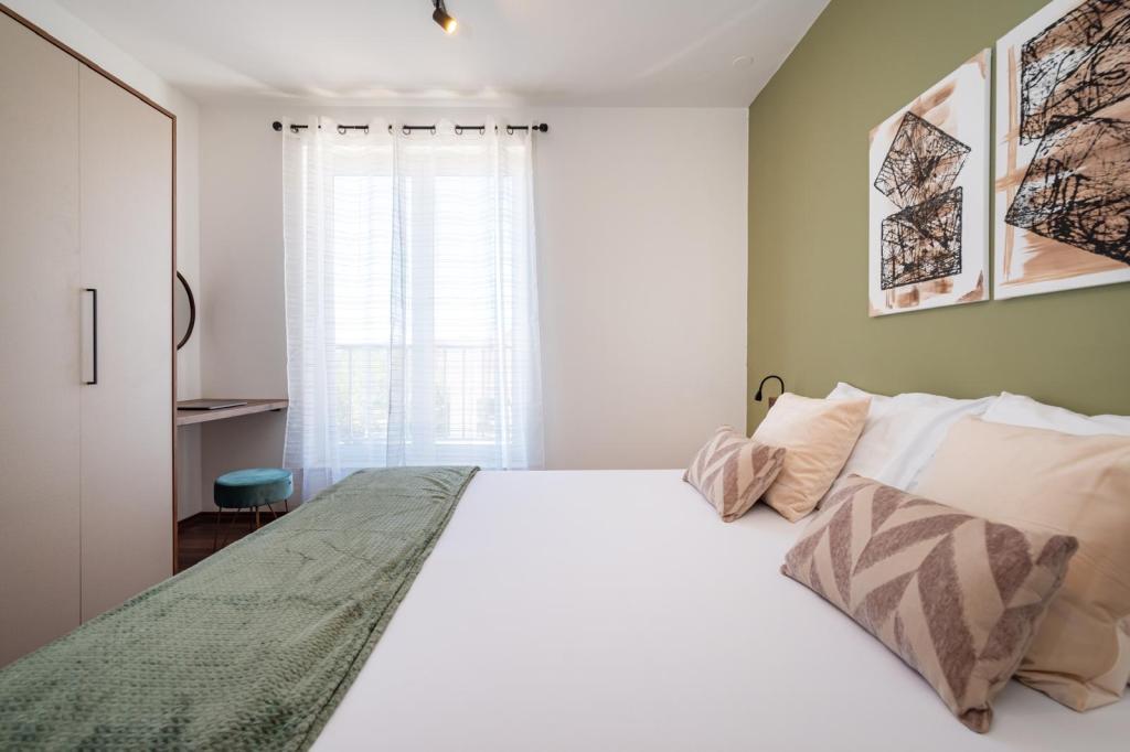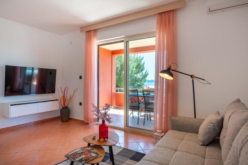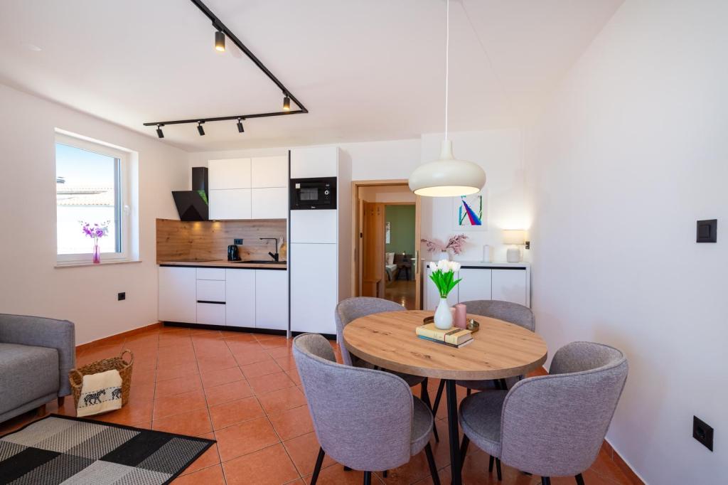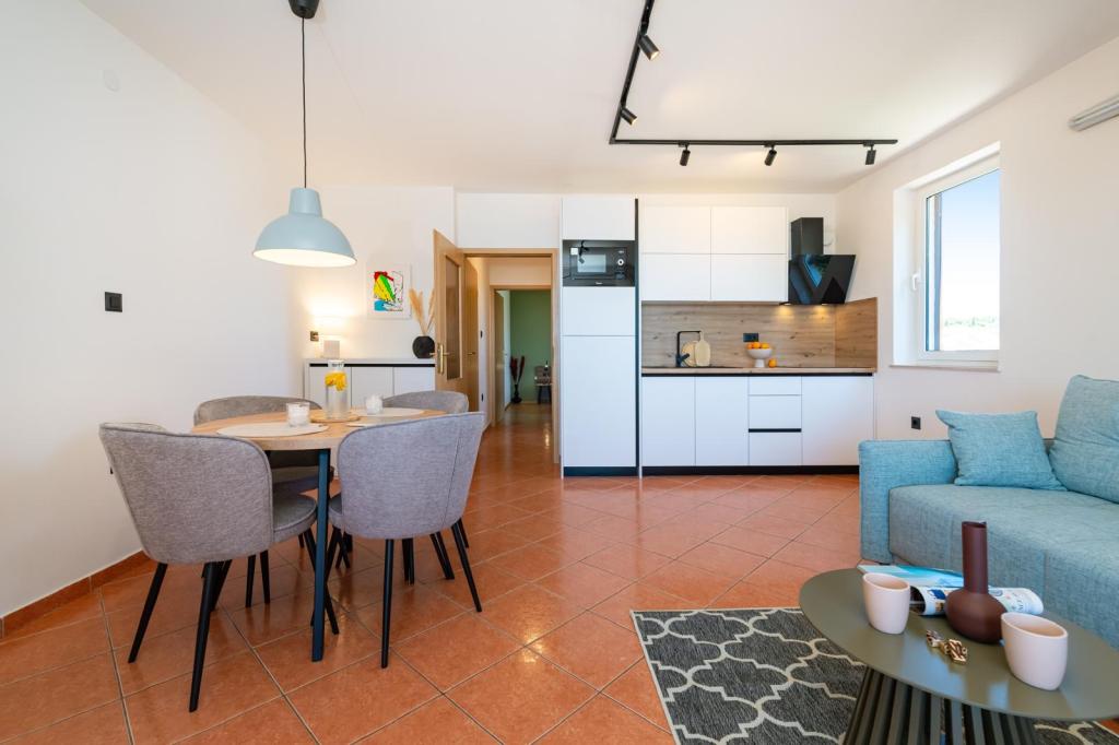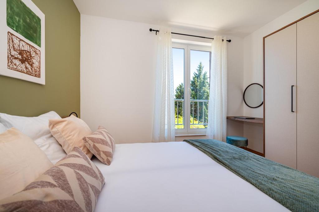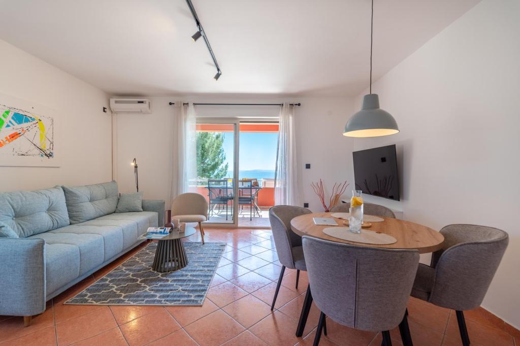 Vila San Marino má osm identických apartmánů rozmístěných na třech podlažích. Na každém patře jsou dva apartmány. Apartmány mají celkovou rozlohu 55 m2 a obsahují dvoulůžkovou ložnici, obývací pokoj s rozkládací postelí, kuchyň, jídelnu a velkou terasu. Všechny apartmány se nacházejí v první řadě u moře a jsou orientované směrem k moři. Jsou vybaveny klimatizací pro chlazení a vytápění. Kuchyně jsou vybaveny nádobím pro přípravu a servírování jídla a nápojů v odpovídajícím množství, lednicí, mrazákem, elektrickou varnou deskou, plynovým sporákem a digestoří a koupelny mají sprchy. Každý apartmán má plochou televizi se satelitním příjmem a anténou a přístup k internetu. Terasy mají posezení.