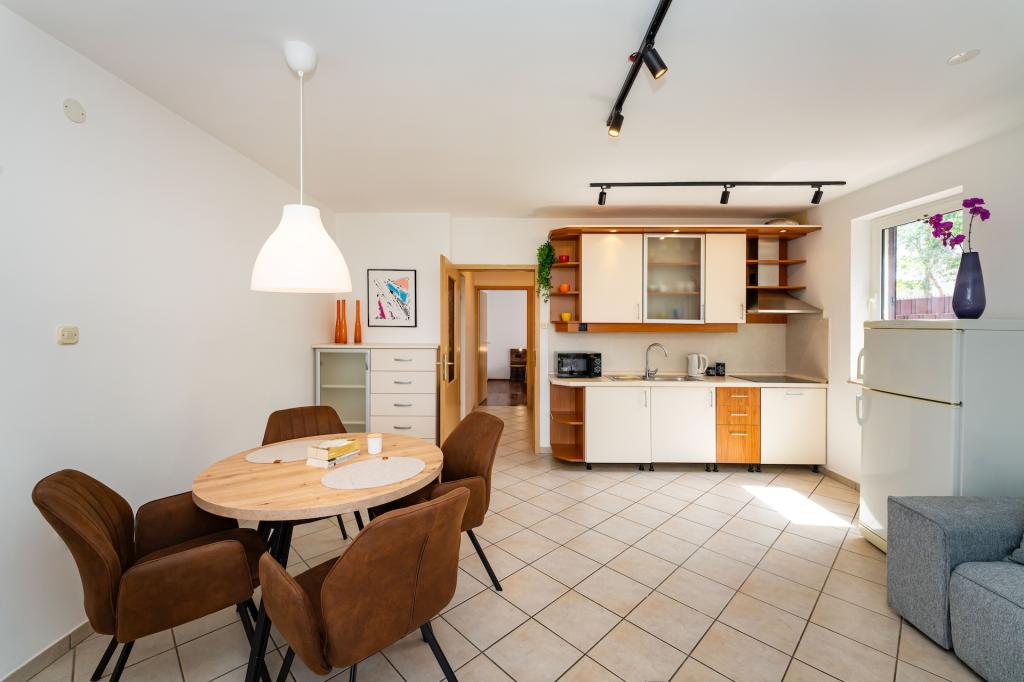 Přečtěte si více Ubytovací jednotkyPro všechny apartmány je maximální počet osob 4. Na našem parkovišti je zajištěno jedno parkovací místo na apartmán. Malí domácí psi jsou povoleni, ale po předchozím ohlášení a na vyžádání. Vstup do apartmánů je možný od 14:00 v den příjezdu. V den odjezdu prosím opusťte apartmán do 10:00. V apartmánech a pokojích není povolen více osob, než je uvedeno. Přivedení hostů do apartmánu nebo pokoje na noc je možné pouze se souhlasem majitele. V den odjezdu jste povinni s hostitelem prohlédnout si apartmán nebo pokoj a uhradit případné způsobené škody. Do apartmánů není povoleno vnášet zbraně, zakázané omamné látky nebo jiné nebezpečné a/nebo hořlavé látky. Majitelé apartmánů nenesou odpovědnost za případné zmizení věcí a cenností hostů. Není povoleno vynášet inventář apartmánu (ručníky, deky, deštníky atd.).