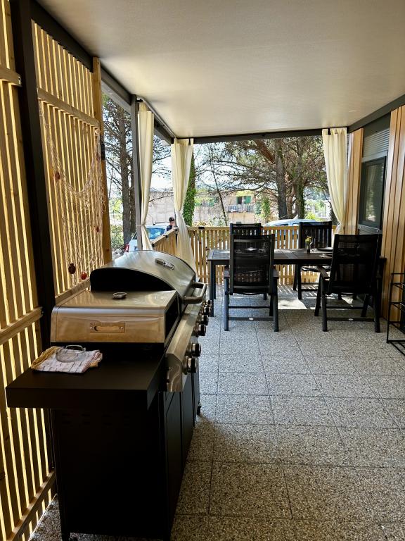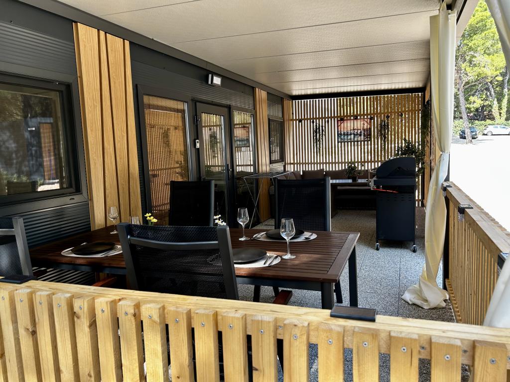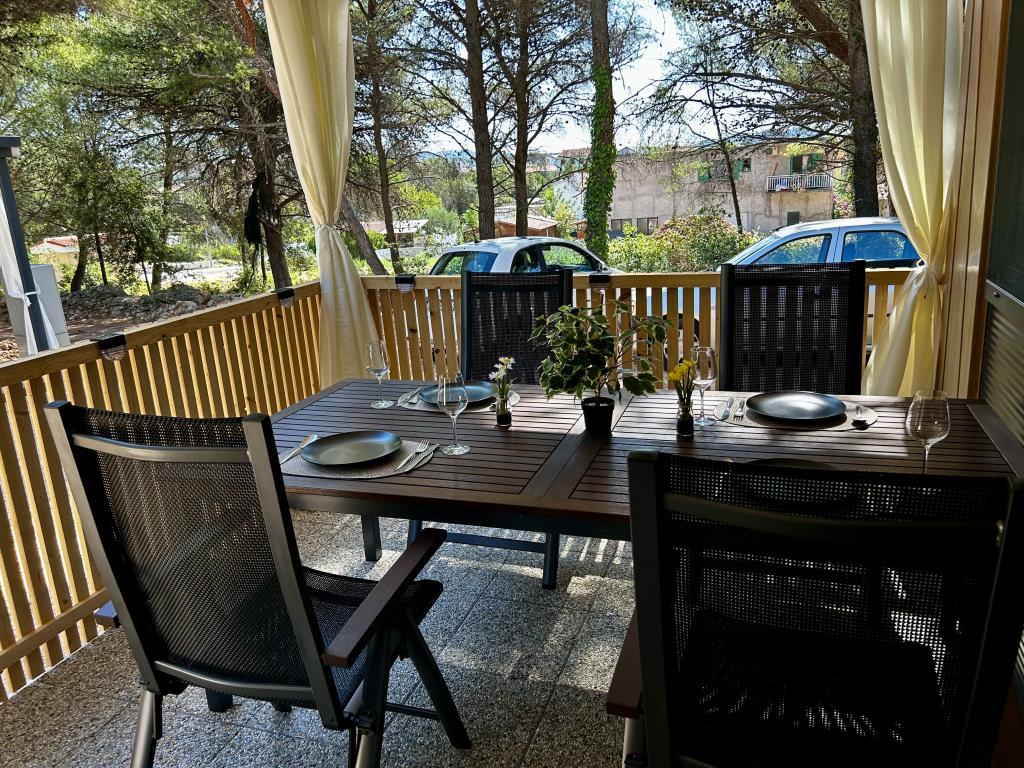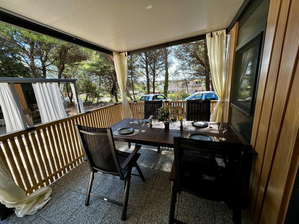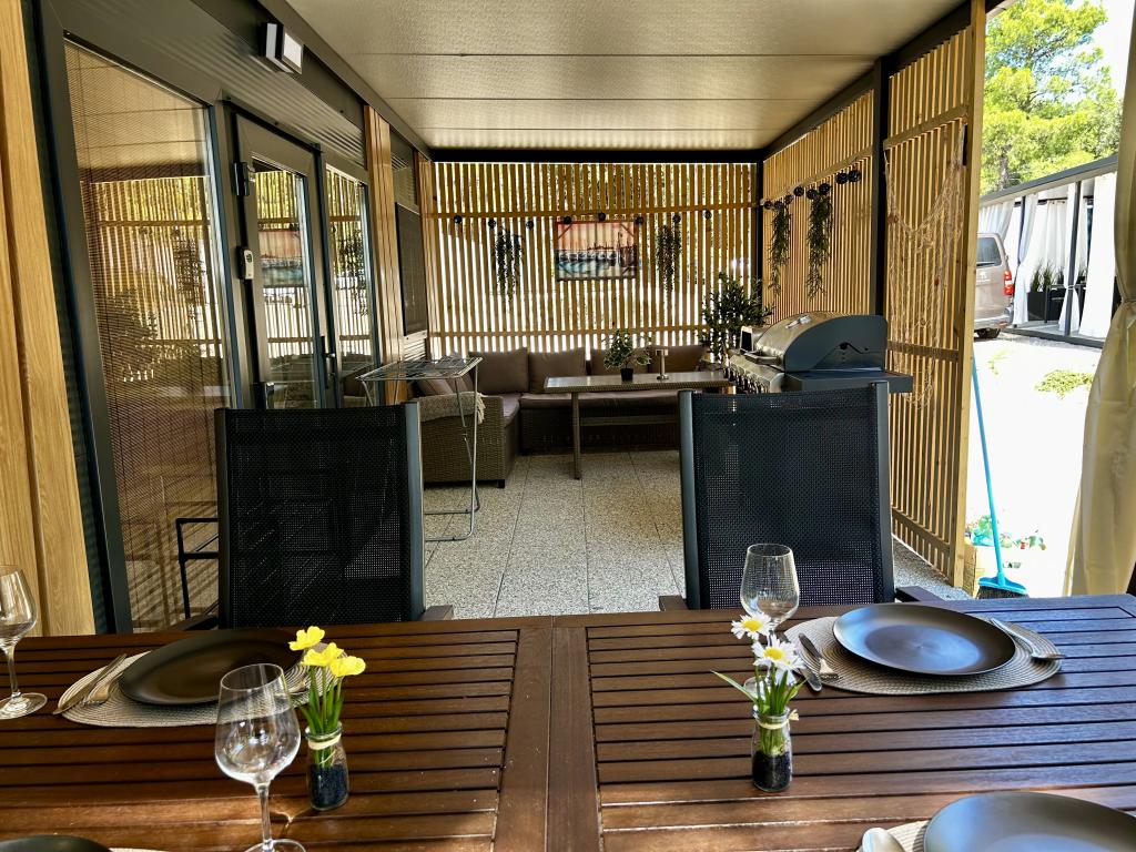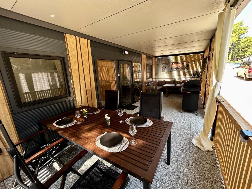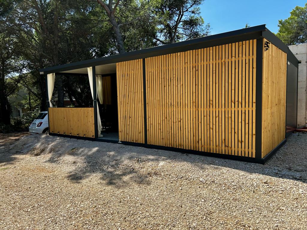 Vítejte v naší okouzlující chatě, ideálním místě k úniku od každodenního stresu! Tato chata se nachází v klidném kempu, pouhé 4 minuty chůze od krásného moře a oblázkových a písečných pláží, a nabízí vše, co potřebujete pro relaxační dovolenou. Klíčové vlastnosti: 25 m2 + 25 m2 částečně uzavřené terasy. • Dvě ložnice: Chata má dvě pohodlné ložnice s manželskými postelemi, ideální pro páry nebo rodiny. Každý pokoj poskytuje klidné místo k odpočinku a relaxaci. • Obývací pokoj: V obývacím pokoji je rozkládací pohovka, která poskytuje další místo na spaní, ideální pro přátele nebo děti. • Krásný venkovní prostor: Užijte si ranní kávu nebo večerní posezení na terase s krásným výhledem na přírodu. Tento prostor je ideální pro grilování nebo relaxaci s dobrou knihou. • Blízkost pláže a jezera: Pouhé 4 minuty chůze vás dělí od moře a oblázkových a písečných pláží a největší jezero v Chorvatsku je vzdálené pouhých 20 minut chůze.