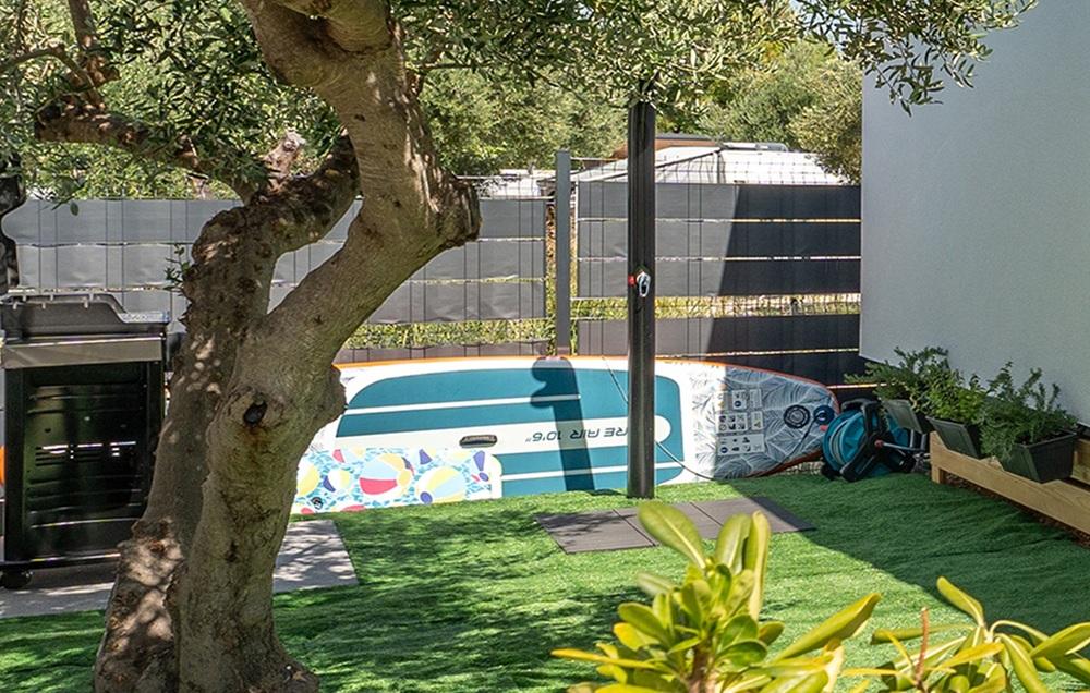 Hosté mají k dispozici pračku, myčku nádobí, klimatizaci, venkovní i vnitřní ledničku, ventilátor na terase, televizi v obývacím pokoji i na terase. Dům má dvě ložnice s postelemi o šířce 160 cm. Postele jsou vybaveny kvalitními matracemi, vrchními matracemi a saténovým ložním prádlem. V obývacím pokoji je rozkládací pohovka pro jednu další osobu. Kuchyň je plně vybavena nádobím a kuchyňskými spotřebiči: kávovar, trouba, mikrovlnná trouba, toustovač... Na dvoře mají hosté přístup ke grilu, lehátkům a dvěma SUP prknům. V domě je vysokorychlostní internet StarLink.