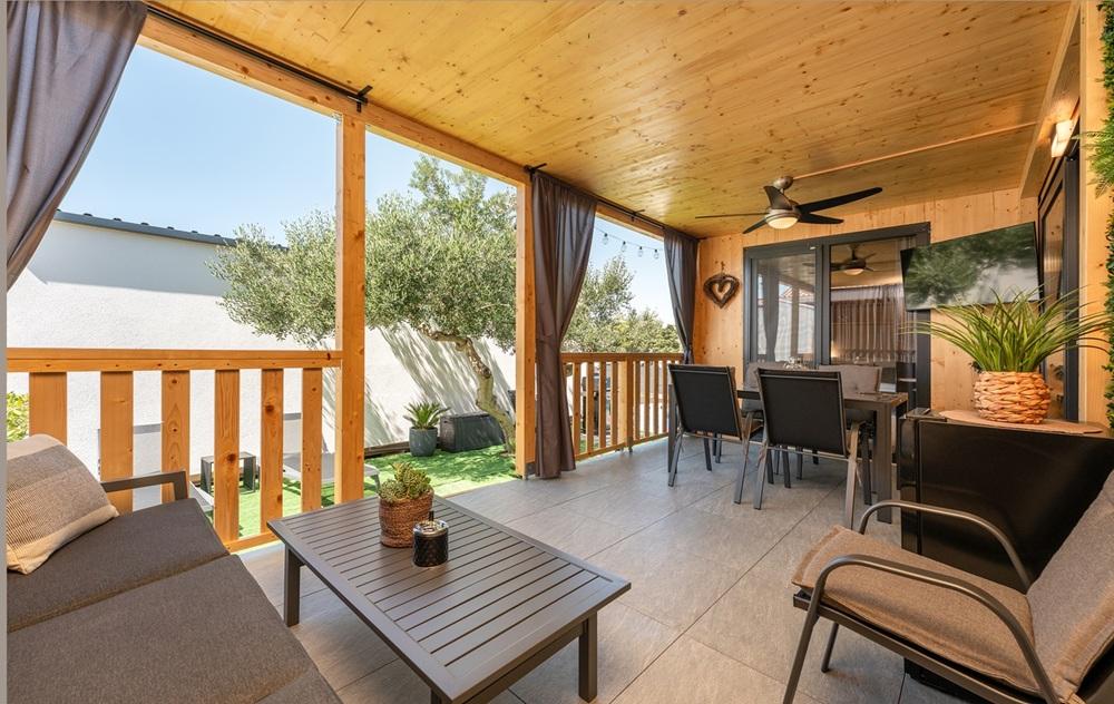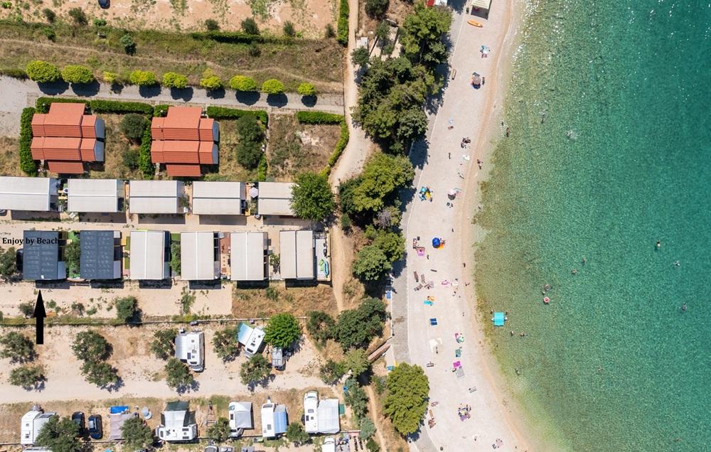 Vysoce kvalitní mobilní dům "ENJOY BY BEACH" - u pláže Janice. Mobilní dům "Enjoy by Beach" se nachází ve 4* kempu Skalinada, pouhých 100 m nad pláží Janice a 800 m od centra Pakoštane. Dům je zcela nový a vybavený na vysoké úrovni. Během vašeho pobytu je vám majitel domu k dispozici pro všechny vaše potřeby a přání.