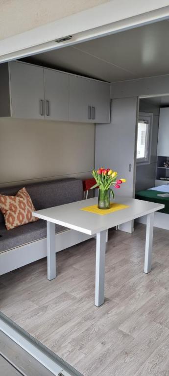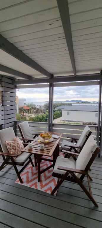 Mobilní domy se nacházejí v centru Pakoštane, hned vedle hlavní písečné pláže s přímým výhledem na moře. Mobilní domy mají dvě ložnice, jídelnu, kuchyň, toaletu a velkou terasu (5). Všichni hosté mají k dispozici gril. Hosté mají k dispozici parkovací místo. Domácí mazlíčci jsou povoleni, ale za příplatek 7 €/noc za zvíře. Máme vlastní kotviště pro lodě a parkování pro přívěsy, které jsou hostům k dispozici za příplatek.