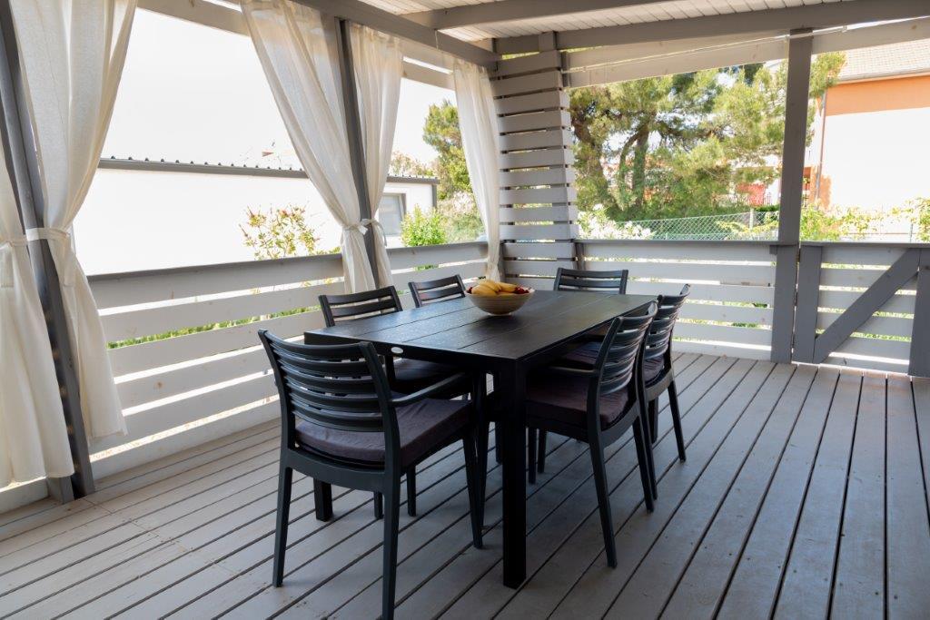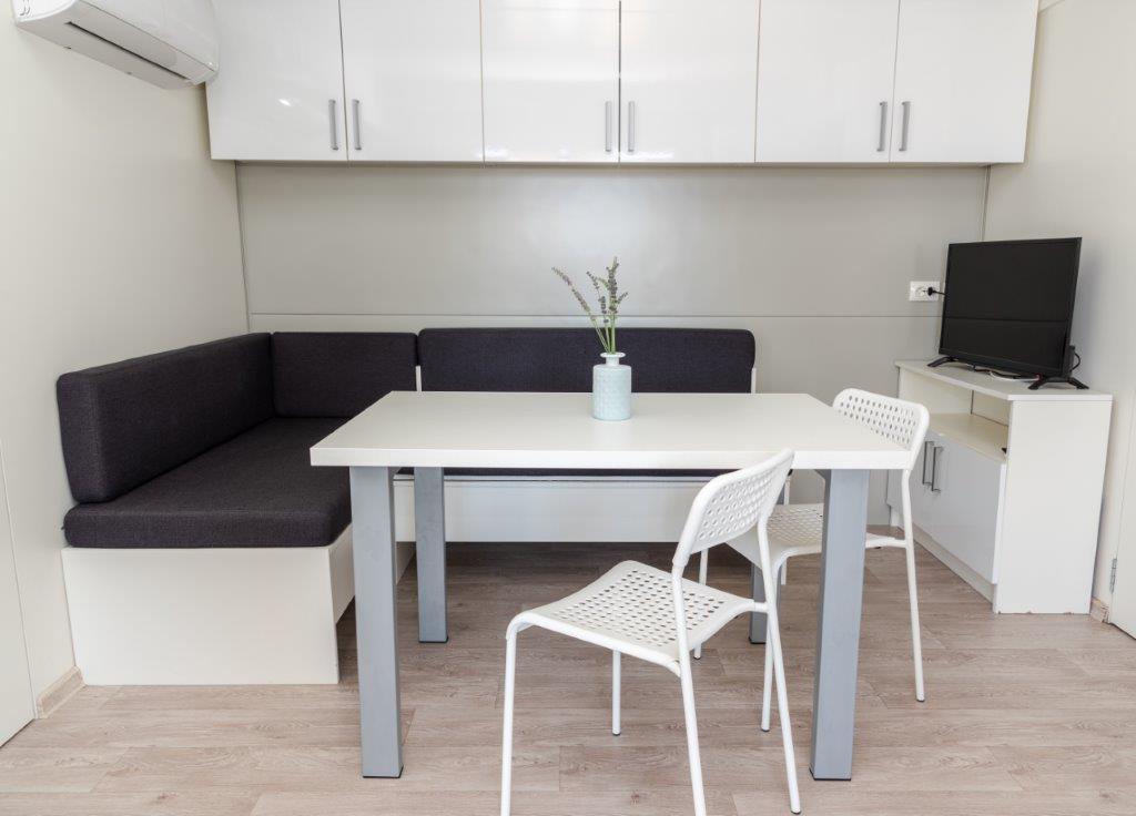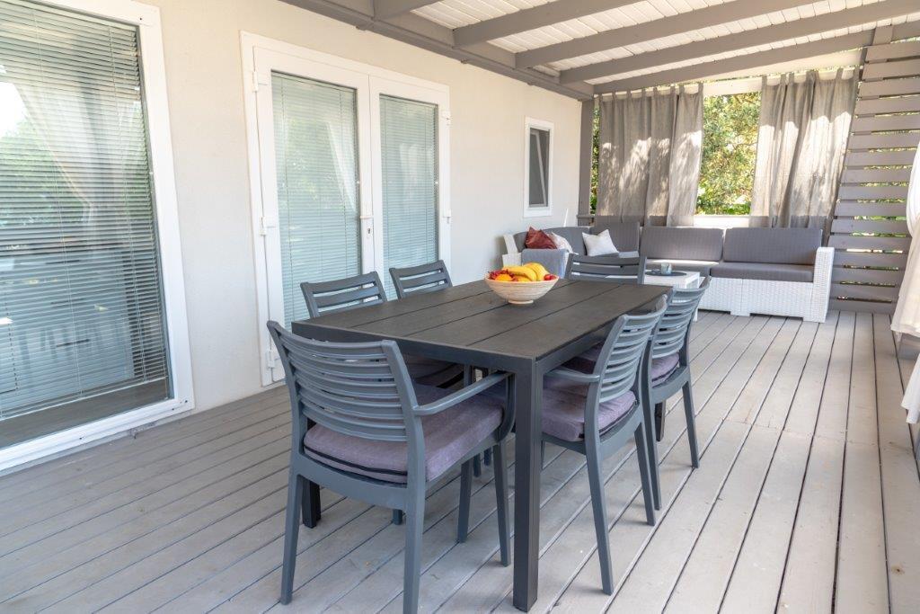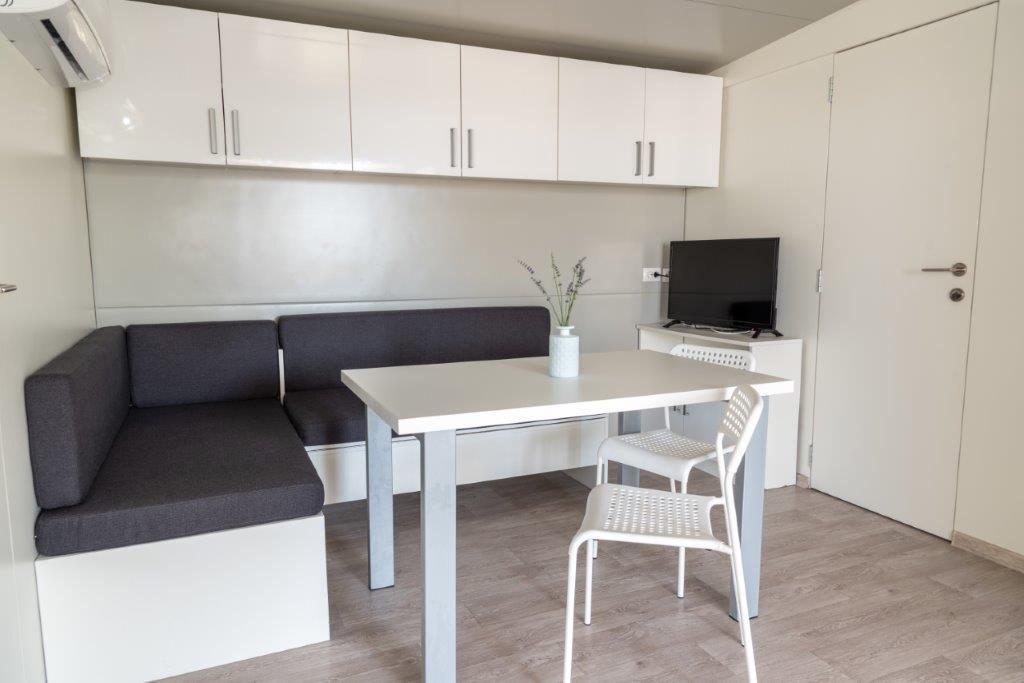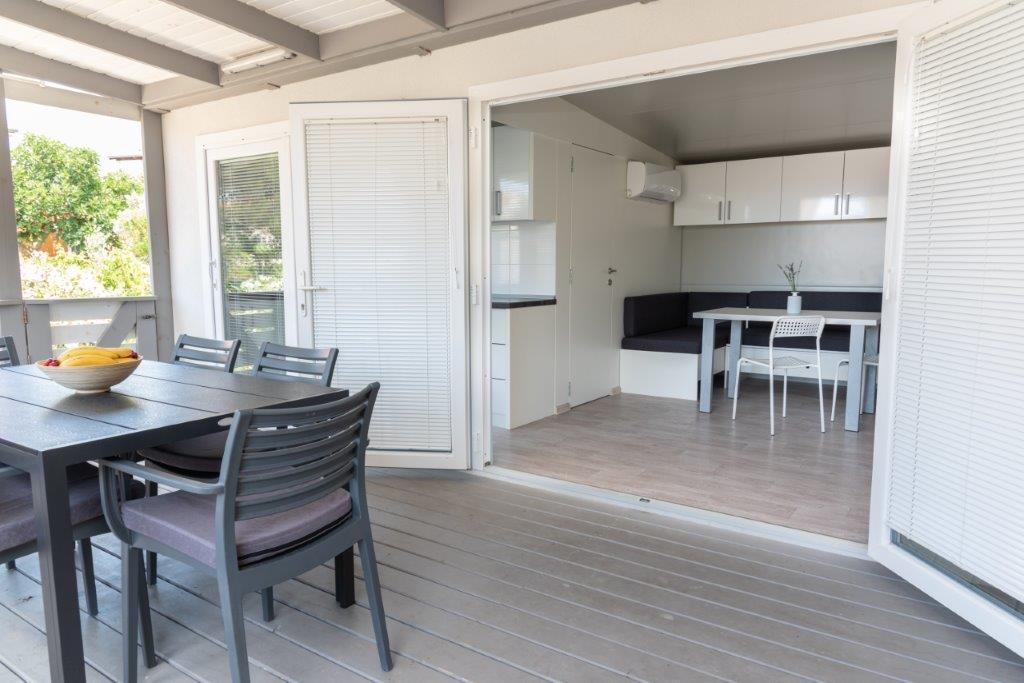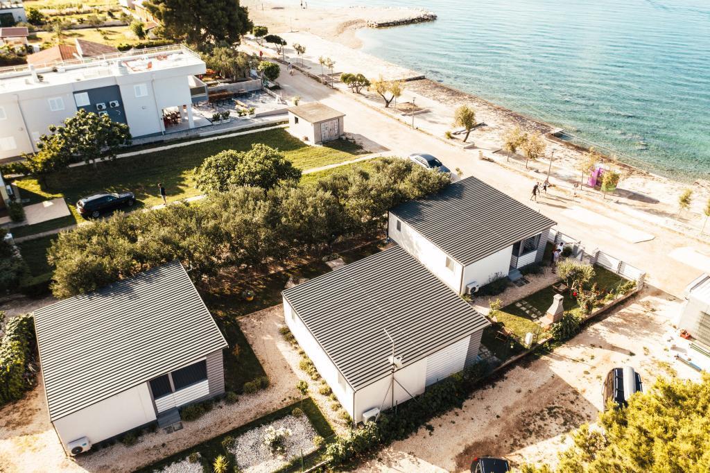 Mobilní domy se nacházejí v centru Pakoštane, hned vedle hlavní písečné pláže s přímým výhledem na moře. Mobilní domy mají dvě ložnice, jídelnu, kuchyň, toaletu a velkou terasu (5). Všichni hosté mají k dispozici gril. Hosté mají k dispozici parkovací místo. Domácí mazlíčci jsou povoleni, ale za příplatek 7 €/noc za zvíře. Máme vlastní kotviště pro lodě a parkování pro přívěsy, které jsou hostům k dispozici za příplatek.