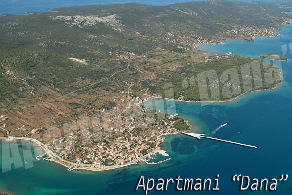Apartmány se nacházejí v blízkosti moře v klidné části Pašman, která se nachází v první řadě (5 m) k moři. Před apartmánem je vstup do moře po betonových schodech. Restaurace, obchody a další pláže se nacházejí cca 50 - 200 m od domu (5 - 15 min chůze).