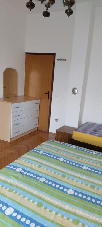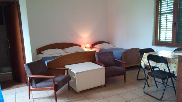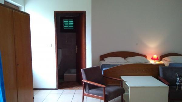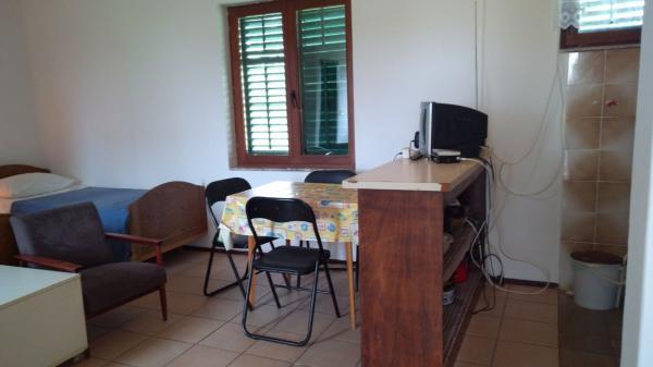 Rodinný dům, ve kterém je zařízený byt v klidném prostředí. Dům má terasu a prostorný dvůr vhodný pro venkovní hraní a pobyt. Možnost využití grilu. Pláž je vzdálená 30 m od krásné písčité pláže a 5 minut od domu. chůze od centra.
