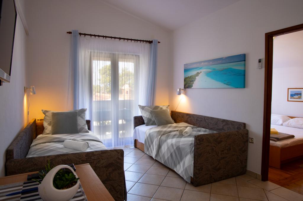 Spontánní nápad strávit dovolenou v Chorvatsku byl výstřel na 10. Velmi pěkní majitelé, útulné, čisté a dobře vybavené apartmány. Fantastická lokalita - dvě pláže asi 100 m od sebe, jedna tichá a klidná ve stínu borovic, druhá s atrakcemi, bary, hudbou. Na místě je vše, co potřebujete pro strávení bezstarostné dovolené - spojuje se s vůní místních specialit, obchodů se suvenýry ... a skvělým výchozím bodem. Upřímně doporučuji pobyt v apartmánech Adria. Děkujeme hostitelům za fantastické podmínky pro relaxaci