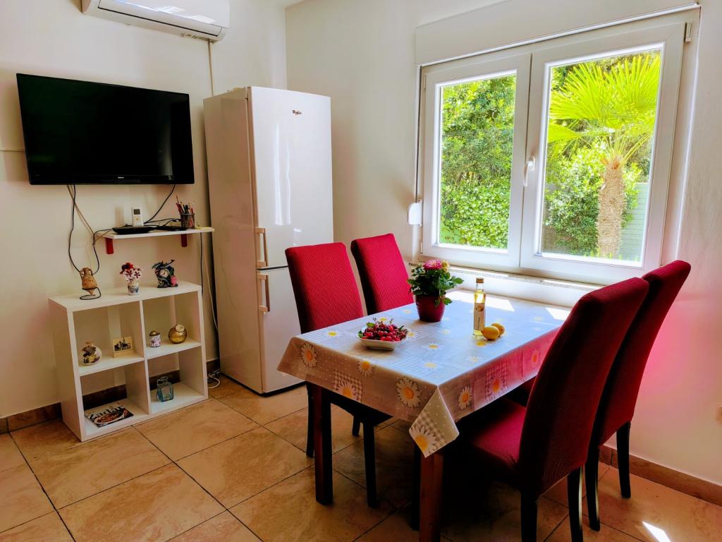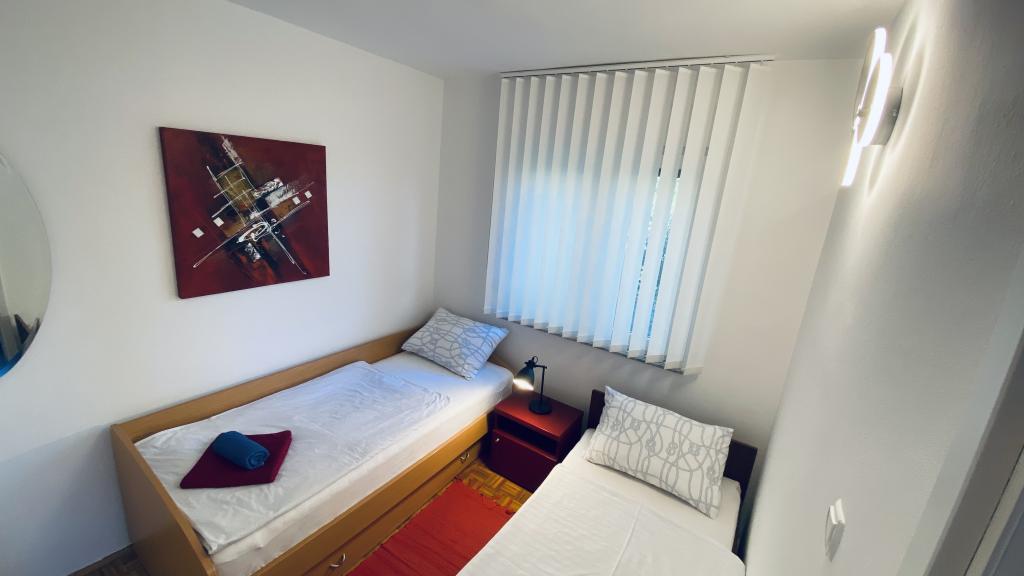 Plně vybavený apartmán, uklizený a čistý. Fotografie na Apartmanija.hr plně odpovídají skutečnému stavu. Parkování před apartmánem. Apartmán se nachází v klidné ulici bez provozu. Probouzí se za zvuku štěbetání ptáků. Pár kroků odtud je dobře udržovaná kamenitá pláž. Moře je křišťálově čisté. Městská písečná pláž je vzdálená 2 minuty chůze. Hostitel je velmi vstřícný, kdykoli k dispozici pro informace.