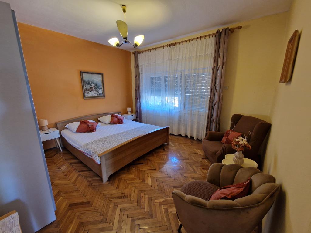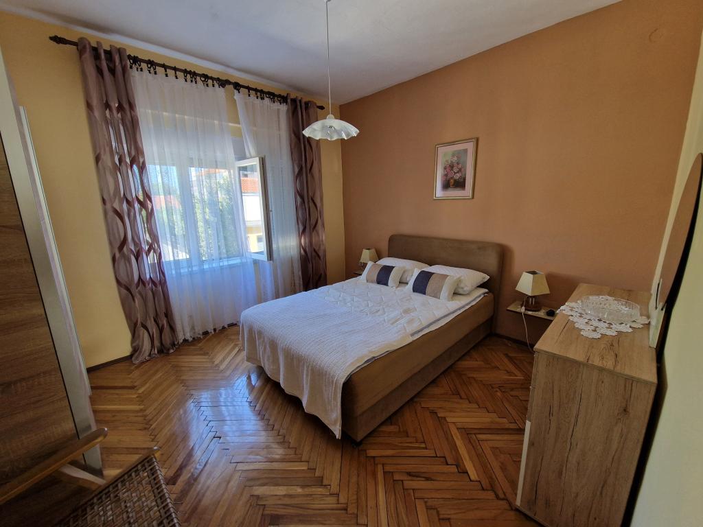 Velmi prostorný, pohodlný apartmán s velkou terasou, balkonem a výhledem na moře. Nachází se v klidné zelené oáze, 100 m od pláže a centra města. Vhodné pro klidnou rodinnou dovolenou. Má vlastní bezplatné parkoviště pro 2 až 3 auta.