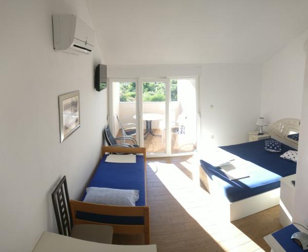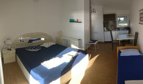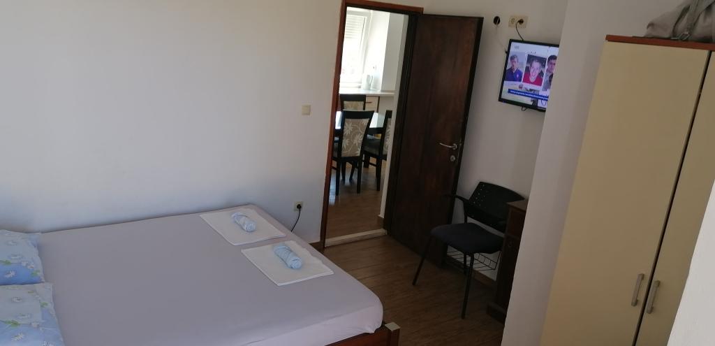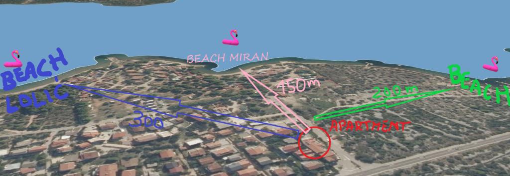 Nádherný výhled na moře a západ slunce z terasy vašeho bytu. Doslova 1 minutu chůze na dobře upravenou oblázkovou pláž s přírodním stínem. Do centra města se dostanete po pláži směrem na jihovýchod. Vzdálenost do centra Pirovac je cca 1500m (15min chůze). Nacházíme se v západní části města Pirovac, nedaleko vchodu do kempu Miran. Dům byl postaven v roce 1982 a apartmány byly zrekonstruovány v roce 2018. Našim hostům nabízíme slušné, čisté a uklizené ubytování s krásným výhledem na moře a západ slunce za férovou cenu. Není tu žádný luxus jako ve 4hvězdičkových apartmánech, ale získáváme body v kategorii „hodnota za peníze“. Dům se nachází v bezprostřední blízkosti dvou národních parků, Kornati a Krka, a jsme jen 5 kilometrů od přírodního parku Vranské jezero. Mírné klima, krásné zátoky, oblázkové pláže s přirozeným stínem staletých borovic, teplé moře, nádherné západy slunce – to jsou jedinečné požitky a zážitky pro všechny návštěvníky Pirovacu, který byl vždy místem pro privilegované k odpočinku a užívání si