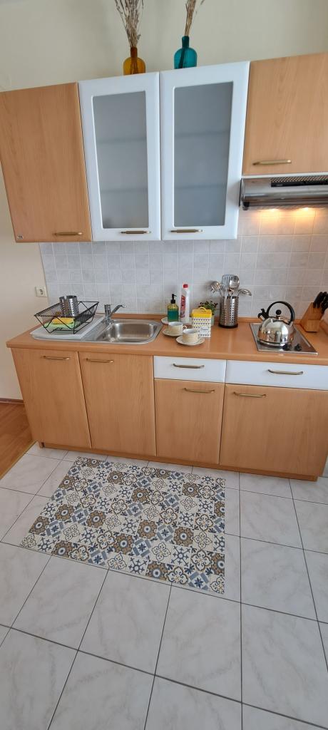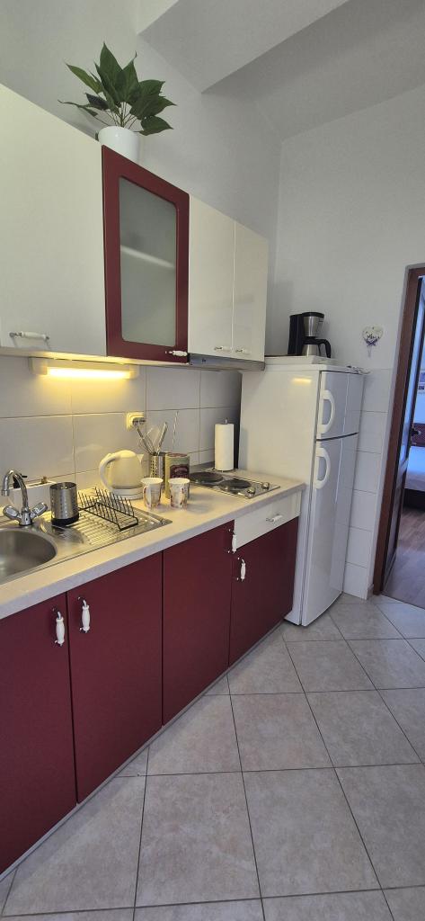 Apartmány Kristina jsou vzdáleny pouhých 150-200 m od centra a pláže, jsou poměrně prostorné a s řadou vybavení, aby se hosté cítili pohodlně a jako doma. Všechny tři apartmány jsou plně vybaveny kuchyní, obývacím pokojem (všechny pohovky jsou rozkládací), klimatizací a TV (satelitní programy). Dva apartmány o rozloze 90 m² (v 1. a 2. patře) jsou světlé, vzdušné, s terasou o rozloze 20 m² s výhledem na moře a mají dvě prostorné ložnice, přičemž každý pokoj má koupelnu a ventilátor. Apartmán o rozloze 40 m² má balkon o rozloze 5 m². K dispozici je jedna ložnice o rozloze 15 m² s koupelnou, klimatizací a lednicí (na chodbě). V celém objektu je k dispozici bezplatné Wi-Fi a na chodbě u vchodu je malá knihovna (police s brožurami, knihami v několika cizích jazycích, časopisy). Před domem je velké parkoviště. Rezervace, podmínky a další informace naleznete v poznámkách. Kalendář rezervací je aktualizován. Těšíme se na váš příjezd!