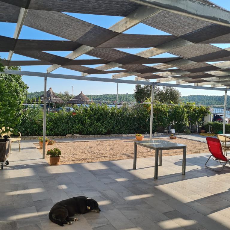Rodinný dům v první řadě u moře na hlavní pláži v Pirovac. K dispozici je 7 apartmánů, z nichž některé jsou 4 a některé 3 hvězdičky. Téměř všechny apartmány, s výjimkou jednoho studiového apartmánu, mají výhled na moře a hlavní pláž před domem. Terasy jsou velké a prostorné, mají střešní panely jako ochranu před stínem a poskytují komfort při vychutnávání si výhledu na moře a okolní ostrovy. Ve dvoře pro naše hosty nabízíme: plážová lehátka, plynový gril, sprchu a WC pro naše hosty. Dvůr je od loňského roku nově zrekonstruován, městský nádech kamene, který vyzařuje harmonii a čistotu, umělecké dílo - Větrná růžice u samého vstupu do dvora, diskrétní kovaný plot, který nabízí panoramatický výhled na tento kousek ráj. Všichni hosté obdrží 1 l extra panenského olivového oleje jako dárek při odjezdu a čekají na ně v apartmánu: láhev Studene, láhev 0,7 dcl extra panenského olivového oleje a 0,7 dcl domácího ořechu na ochutnání a vychutnání na výroční . Protože každoroční by měl být hédonismus a všechno ostatní jsou příběhy!