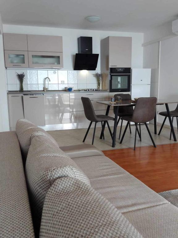 Pobytová taxa je v ceně. Doklad o potvrzení rezervace při rezervaciByli jsme tam v září na dovolené, poprvé, nezapomenutelné, úžasné. Apartmány jsou krásné, výhled z terasy nezapomenutelný. Kryté parkoviště, každý má své místo pro auto. Apartmán nás přivítal se vším, od kávy, cukru, soli, koření, olivového oleje od hostitele, pracího prostředku, mýdla, toaletního papíru... vše, co potřebujete k zahájení, a ještě víc. Všechno bylo perfektně čisté a vkusně zařízené. Klimatizace v každém pokoji. Jednoho dne nám hostitel dal kompletní oběd, grilovanou rybu, guláš, chléb, perfektně připravené. Na dvoře jsou lehátka, která si můžete vzít na pláž, sprcha, toaleta, nemusíte chodit do apartmánu. Všechno bylo perfektní, přímo na pobřeží, klid a pohoda, lidé v místě jsou velmi příjemní. Jinak jsou hostitelé úžasní lidé a vědí, co znamená turistika a jak potěšit hosty. Také jsme dostali dárky k odjezdu, 1 l jejich olivového oleje a bylinkový čaj. Už jsme si rezervovali na příští rok, protože jsme se skvěle bavili, a pochvala hostitelům za údržbu apartmánů a péči o jejich hosty. Mnozí by se mohli podívat, jak by to mělo fungovat. Moc děkuji a s pozdravem, Dragica, Joško a Ana