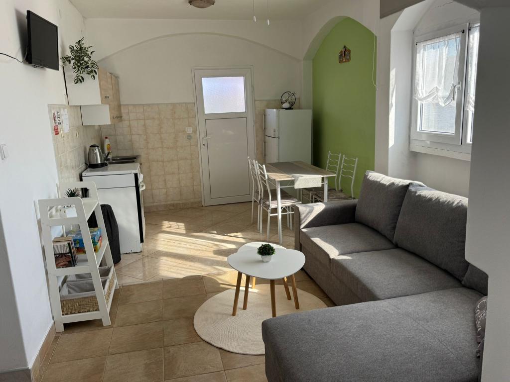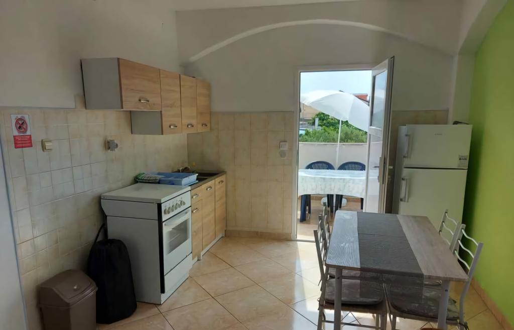 Apartmány se nacházejí v přízemí a prvním patře rodinného domu, který se nachází v klidné a příjemné čtvrti, ideální pro relaxační dovolenou. Jedná se o dvoupokojové, moderně zařízené a plně vybavené apartmány, které poskytují vše, co potřebujete pro příjemný pobyt. Hosté mají k dispozici bezplatné Wi-Fi, klimatizaci, Smart TV, hlídané parkoviště a možnost grilování. Pláž a centrum města jsou vzdálené pouhých 300–400 metrů, takže auto není potřeba. V bezprostřední blízkosti se nacházejí tři větší supermarkety, pošta, klinika, lékárna a tržnice, stejně jako četné restaurace, pekárny a kavárny. Během letních měsíců se ve městě každý den pořádají různé akce a zábavní a kulturní aktivity. V blízkosti apartmánů se nachází také dětské hřiště, díky čemuž je ubytování obzvláště vhodné pro rodiny s dětmi.