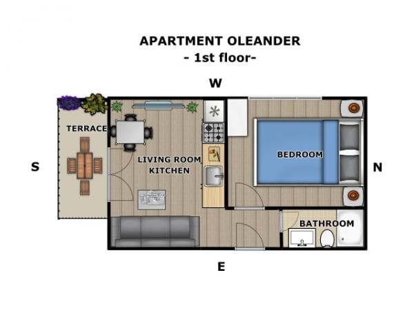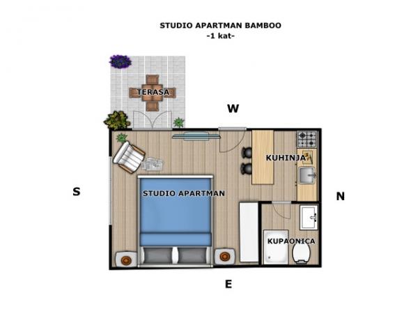 Studio apartmán pro dvě osoby se dvěma přistýlkami (32 m2)