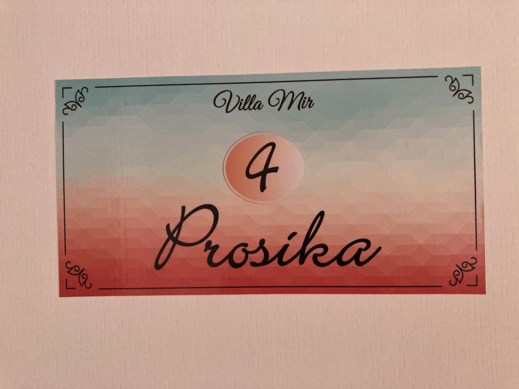 Villa Mir je krásný moderní dům s krásnými a uklizenými apartmány. Poprvé jsme se s manželem ubytovali v bytě Prosika, který předčil všechna naše očekávání: máte vše, co potřebujete, jako byste byli doma (kuchyňské náčiní, misky, hrnce, sporák, kuchyňské utěrky, TV, wifi, vzduch klimatizace...) Majitelé apartmánů jsou veselí, vřelí, ochotní a přátelští lidé. Zaujala mě především laskavost a trpělivost paní Vedrany, která ježkovi vyndala bodliny a půjčila mi pantofle do vody... Nevím, kdo by nebyl s ošetřením spokojen! Máte své soukromí a hlavně se cítíte bezpečně, víte, že majitelé jsou tam a zakročí, kdyby se cokoliv stalo. Moře blízko, čisté (2 min. chůze, nepotřebujete auto), v borovici cvrlikají cvrčci... Přijďte odpočinout duši i tělu, užít si pohodu a načerpat nové síly na nová pracovní vítězství, která vás jistě čekají. Paní Vedrana vás přivítá s úsměvem a vyprovodí. Opravdu duše majitele!