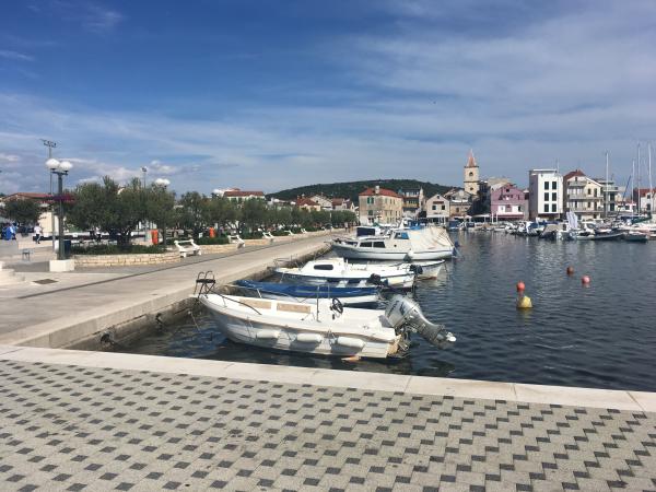 Apartmán 1 se nachází v prvním patře budovy. kompletně moderní v klidné části Dalmácie. Nachází se 300m od hlavní pláže. 5 minut chůze od pláže a 15 min chůze od centra města.