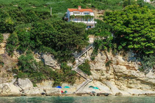 Dům s apartmány J, A se nachází v klidné části města Pisak. Postaven na útesu nad mořem, ve stínu staletých olivovníků. J, A. má svůj vlastní přístup k moři. a udržovány konkrétní bazén. 2 oblázková pláž je 3-4 minut chůze. Až do města je jen 5-6 minut chůze. Apartmány jsou vybaveny vším moderní host potřeba pro pohodlný pobyt. Uvnitř dvoře, hosté zahrnuje venkovní sprchu s teplou a studenou vodou a gril s dřevo a uhlí. Ke každému bytu náleží parkovací stání a byt je možné se podívat i na parkovišti. Náš dům hosté mohou vybrat, které příběhy prostě chtějí užít klid, krásný výhled na moře, na ostrově Brač, Makarské riviéře a malebných hor nad městem Pisak.