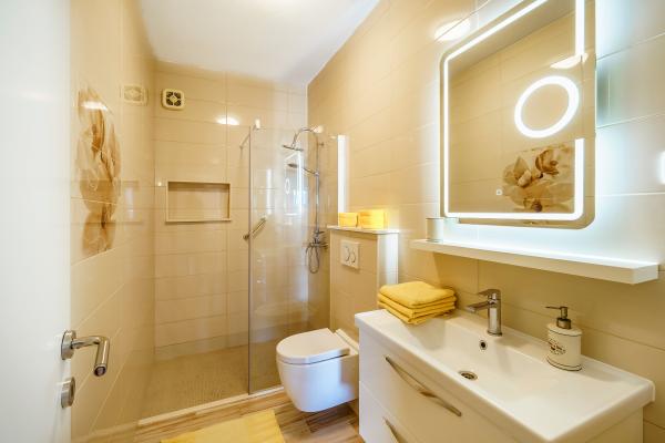 Apartmán je dokonale čistý, všechno je funkční a skutečně odpovídá fotografiím v inzerátu. Z terasy je krásný výhled na moře a v dáli můžete vidět ostrov Brač. Apartmánový dům má svoji soukromou terasu se vstupem do moře, na kterou se dostanete po schodech. Asi 3 minuty pěšky pak přijdete na další dvě krásné a klidné pláže. Voda je křišťálově čistá se spoustou rybiček - doporučuji vzít si potápěčské brýle. Velmi jsme ocenili, že čluny a výletní lodě plují daleko od pláže a neobtěžují tak hlukem. Majitelé, Jan a Jelena, jsou velmi milí a ochotní, ve všem se snaží vyjít vstříc. Přeji jim do budoucna jen to nejlepší. S potěšením tenhle apartmán doporučím všem přátelům.