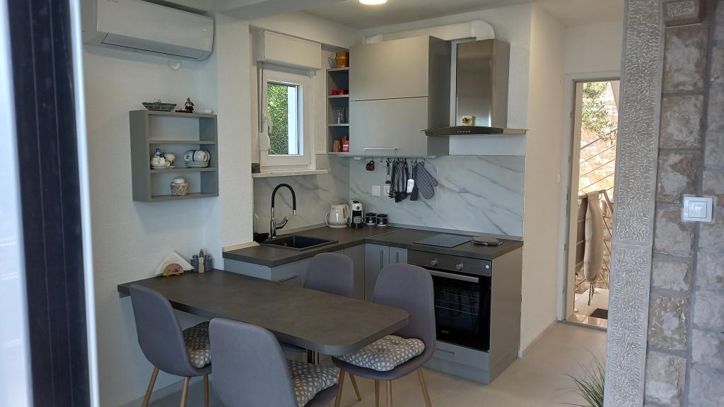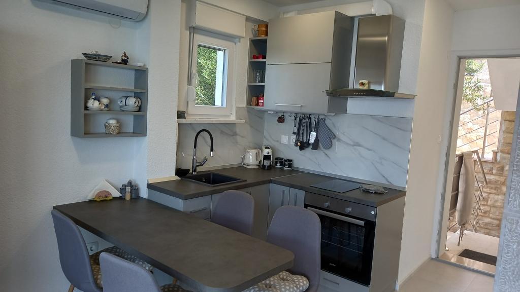V apartmánu jsme bydleli 10 dní od 22.7.2016. Apartmán je velmi dobře zařízený, kromě pračky tam skutečně nic nechybí, kuchyňka je výborně vybavená. Domácí jsou velmi milí, paní mluví anglicky, ale domluvíte se is domácím chorvatsky - kde je ochota je i cesta :-) Místo je spíše klidné, my jsme byli jako rodinka a velmi se nám líbilo, nebyl tam žádný hluk v okolí, ale přitom hodně rodin, takže děti si našly i kamarádů. Nádherně Dokonale čistá voda a co děti ocenili, v blízkosti břehu (asi 20m) je skála, ze které se dá skákat a šnorchlovat kolem ní. Na malé pláži jsme se setkávali s těmi samými lidmi, takže vůbec se nemusíte obávat nechat si něco na břehu. Jediné, co vás může zaskočit jsou prudké schody k pláži. My jsme to brali jako rozcvičku, ale pro některé to může být problém. My jsme byli již podruhé v tomto apartmánu a byli jsme spokojeni. Doporučuji.
