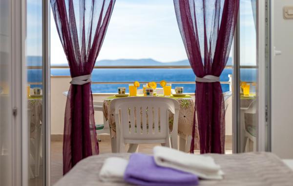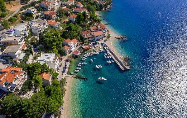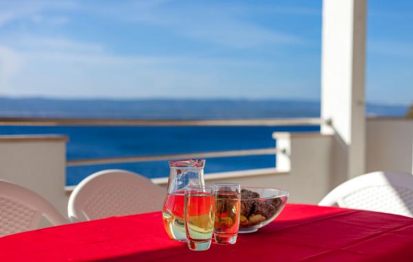 Apartmány mají velkou terasu s krásným výhledem na moře a ostrov Brač.Nudimo možnost pronájmu jízdu lodí.